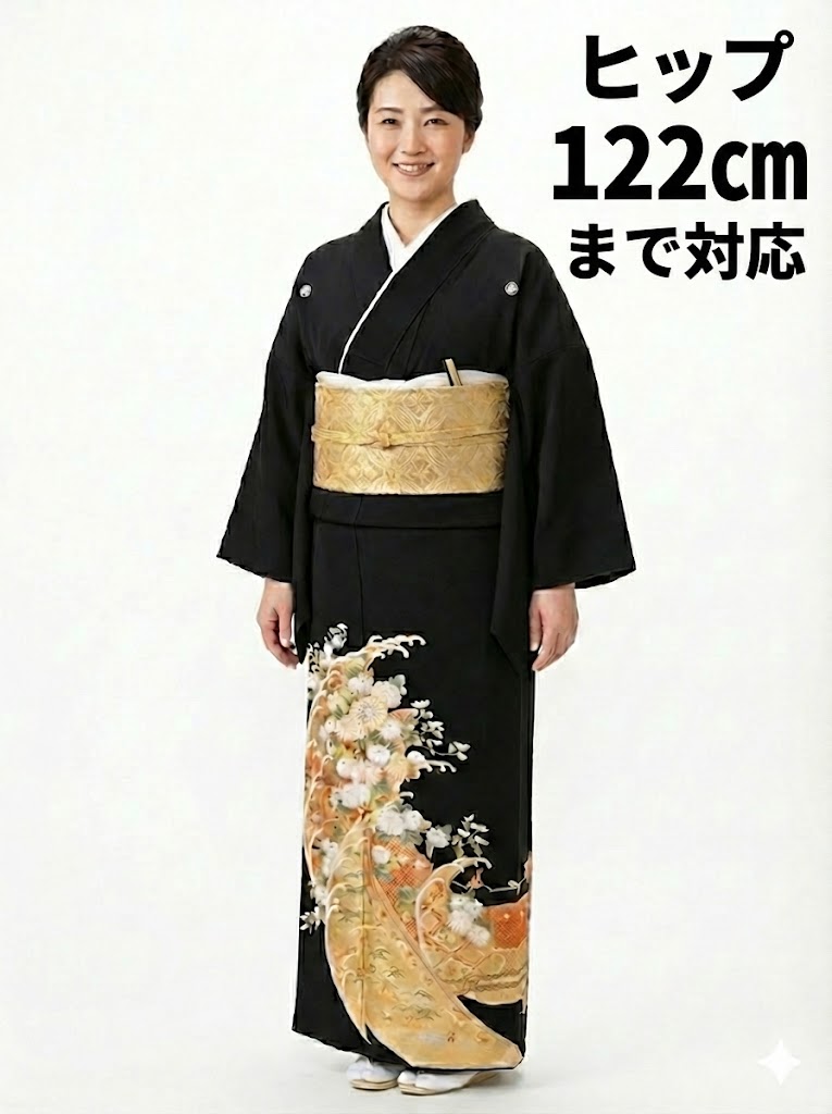 大輪の菊の花が、エレガントで煌めく華をもたらして格の高い黒留袖を着たいけれど派手な印象のものは避けたいし、だからといって地味なものも、気が引ける・・・と、ご自身の好みや式でのお立場などを考慮して、どの黒留袖が相応しいのか悩んでいらっしゃる方。そんな方には特にお勧めしたい黒留袖となっております。こちらは新潟県十日町にある、友禅老舗『関芳』が手掛けたブランド『ことほぎ』の黒留袖です。色遣いや文様の種類を控えめにしている分、意匠高く手の込んだ装飾に目が留まります。お祝いの席に相応しい『金色』を基調に、ふんだんに金糸が施されているので、風格を感じさせる黒留袖に仕上がっています。また金駒刺繍で仕上げられた大輪の乱菊が、大胆なのに洗練された華やかさを印象付けます。有職文様の花七宝文や金に彩られた流水の上には、吉祥文様である菊があしらわれており、格調の高さとお祝いの良き日を表しています。色彩豊かな装飾の豪華さとは全く違う、金の文様が織り成す煌めく華やかさが、素敵な黒留袖です。きめ細やかな金駒刺繍の菊が人々の目を惹きつけて離さないことでしょう。商品詳細商品番号mito_340商品名ことほぎ 金菊素材表地:正絹100% 裏地:比翼仕立合成繊維サイズ裄68cm・身丈167cm・袖丈49cm サイズの詳細は*こちらをクリック*してください。対応身長153cmから167cm位 / 洋服サイズ 7〜13号位までコーディネート留袖(着物)以外の帯や小物などはお選び頂いた着物に合わせて当店スタッフがコーディネートさせていただきます。 ご要望などのあるお客様は備考欄に具体的にご記入ください。注意事項商品の色目につきましては、お客様のご覧になられますパソコン機器及びモニタなどの違いにより実際の商品素材の色と相違する場合が御座います。予めご了承下さい。注意事項2帯に関しましては、商品の出荷状況などにより同じ物をご用意させて頂くお約束ができません。同じような帯のイメージでコーディネートさせて頂きますので、ご了承の程、よろしくお願い致します。レンタル前にご予約状況と対応サイズを必ずご確認ください!※ご利用日が○であれば前後日が×だとしても借りることができます。 24,800円 税込 送料別 カードOK レビュー9件 レンタル衣裳 マイセレクト ![]() | ||