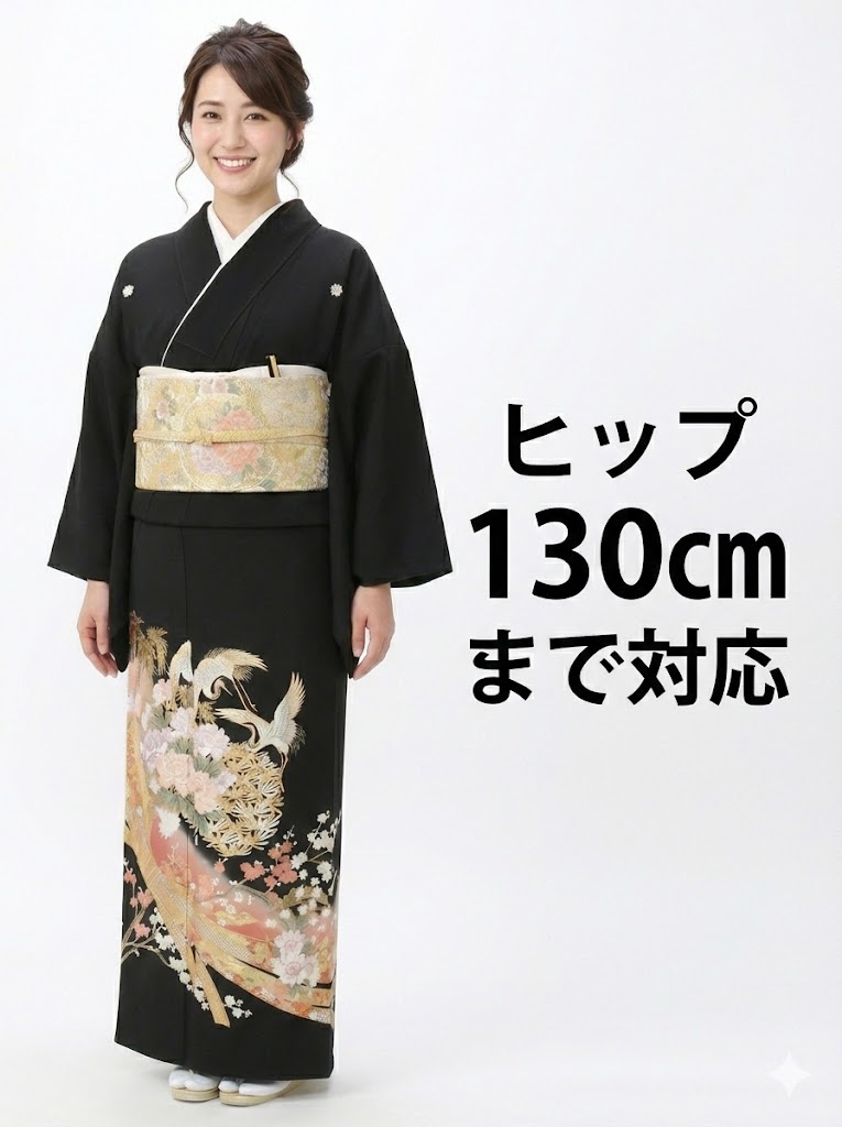 雅な古典柄と巧みな色使いが麗しい黒留袖優雅で華やかな王朝文化を偲ばせる古典柄と磨き抜かれた色合いが、なんともいえない美しさです。まず目に留まるのは、華やかな花々に包まれた御所車(ごしょぐるま)の花車文様。裾にかけて配された蔓帯(かずらおび)と扇の文様です。花車は、御所車と花を合わせた、平安王朝を象徴する華麗な柄。菊・牡丹・松竹梅の縁起が良いとされる吉祥文様が御所車を囲みます。草花の緑は、常緑樹の松の色としてよく用いられる常盤(ときわ)色と孔雀石(くじゃくいし=マラカイト)の色として知られる緑青(ろくしょう)色。2色を巧みに使うことで立体感が生まれ、草花が生命力に富んでより瑞々しさを感じます。柄全体に彩られた紅・橙・紫による色の濃淡と、常盤と緑青によるコントラストが目にも鮮やかな色彩になり、人々の目を楽しませてくれるでしょう。花車と草花文様の冴えわたるデザインとはうってかわって、蔓帯文と扇文による流れるような意匠が対照的。蔓帯は能の衣装で使う、細くて長いリボンのような布に繊細な模様が描かれたもの。末広がりの形をしたおめでたい柄の扇文とともに、文様の中に古典柄があしらわれており、お着物を優美に魅せています。花車などの柄が大胆にもかかわらず、端整で見目麗しい一着に仕上がっています。お祝いの席で素敵に装って、ぜひ列席者の皆さんを魅了してください。商品詳細商品番号mito_138商品名北281 花車 フリー素材表地:正絹100% 裏地:比翼仕立合成繊維サイズ裄70cm・身丈159cm・袖丈49cm サイズの詳細は*こちらをクリック*してください。対応身長155cmから159cm位 / 洋服サイズ 15〜19号位までコーディネート留袖(着物)以外の帯や小物などはお選び頂いた着物に合わせて当店スタッフがコーディネートさせていただきます。 ご要望などのあるお客様は備考欄に具体的にご記入ください。注意事項商品の色目につきましては、お客様のご覧になられますパソコン機器及びモニタなどの違いにより実際の商品素材の色と相違する場合が御座います。予めご了承下さい。注意事項2帯に関しましては、商品の出荷状況などにより同じ物をご用意させて頂くお約束ができません。同じような帯のイメージでコーディネートさせて頂きますので、ご了承の程、よろしくお願い致します。レンタル前にご予約状況と対応サイズを必ずご確認ください!※ご利用日が○であれば前後日が×だとしても借りることができます。 14,800円 税込 送料別 カードOK レビュー19件 レンタル衣裳 マイセレクト ![]() | ||