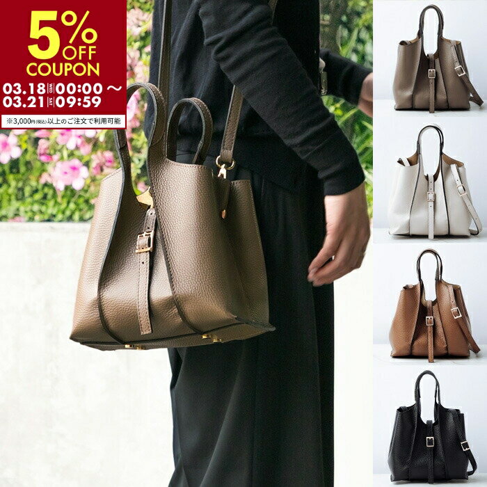 サイズ(cm) バッグ 高さ 20 横幅 20 奥行 13 ハンドル 34 ポーチ 高さ 15 横幅 14 奥行 10 ストラップ 74〜128 ご注意 ※個体差により表記サイズと多少の誤差が生じる可能性がございます。予めご了承ください。※ご利用のモニター環境により色味が実物と異なって見える場合がございますので、予めご了承ください。 スペック・素材 素材 本体部分:牛革 スエード部分:床革 ストラップ部分:牛革 重量 約 570g(バッグ単体 350g) 生産国 MADE IN ITALY ラッピングはこちら>> ※ メーカー希望小売価格はメーカー商品タグに基づいて掲載しています。いくつも顔を持つ飽きない上品バッグ シンプルで洗練されたデザインと、イタリアンレザーの上質な生地感が魅力のバッグ。 そのままのデザインではもちろん、サイドのボタンを留めることでデザイン違いのハンドバッグとしても楽しめる逸品。付属のストラップを付ければショルダーバッグとしてもお使いいただけます。 さらにバッグインバッグや小ぶりのショルダーバッグとして使用できる同素材のポーチも付属。普段使いからオケージョンまで、幅広いシーンでの活躍が期待できるアイテムです。 AULENTTI(オーレンティ) 2019年にスタートしたイタリアのバッグブランド。すべてをイタリア国内で製造する、高い品質のイタリアンデザインが魅力です。品質と機能性の両方を備えたバッグで、女性の日常を豊かに彩ります。 AULENTTI 一覧はこちら >> 品が増す、イタリアンレザーの控えめな光沢 素材には上質なイタリアンレザーを使用。控えめな光沢と繊細なシボが生み出す奥行きのある表情が、装いにさりげない高級感を添えてくれます。 使い込むほどに革は柔らかさを増し、風合いもゆっくりと変化。経年変化を楽しみながら、長く愛用できるのも本革ならではの魅力です。 側面にはスウェード生地の切り替えを配し、洒落感のあるデザインに。お客様レビューでは「この質でこの値段はお得」との声が寄せられる、コストパフォーマンスの高さも見逃せません。 ボタンを留めればドラム型に変身! 本体のバッグの両サイドに配備されたボタンを留めると、ドラム型のハンドバッグに早変わり。側面に配されたスエード生地がフロントにくるデザインもお楽しみいただけます。 付属のストラップを付ければショルダーバッグとしてもお使いいただけます。ストラップは、付属のポーチにも取り付け可能です。 小ぶりでも満足の収納力 バッグ本体は小ぶりなフォルムながらも、約13cmのマチによって荷物をたっぷり収納できる容量を確保。硬めの底は500mlボトルなど重めの物を入れても型崩れしにくく、安定感のある作りとなっています。 上部にホックやボタン、底鋲まで、金具部分はゴールドカラーを採用。実用性を高めるとともにエレガントなムードを演出しています。 附属のポーチはちょっとしたお出かけに丁度いい大きさ。バッグインバッグとして使うのもおすすめです。 トレンドに左右されず、上質さを味わうことができるバッグは、きれいめからカジュアルまで幅広いスタイルにマッチ。クオリティにこだわった、大人のためのレザーバッグを是非お楽しみください。 19,800円 税込 送料別 カードOK レビュー4件 GochI by ROCOCO ![]() | ||