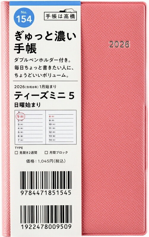 商品名 ・No.154 Tmini ティーズミニ 5 ピンク 手帳判 詳細 ・始まり年月 :2026 1月始まり ・種類 :ビジネス手帳 ・品番 :84471_154 ・サイズ :A6 ・メーカー名 :TAKAHASHI / 高橋書店 ・小さいサイズでも、付録内容が充実したシリーズ。 ・カラーも記入形式もバリエーション豊富。 ・カバーはダブルペンホルダー付きで、2つのペンホルダーにペンを1本差し通せば、カバンの中でも手帳が開かず便利! ・小さいサイズながら、切り取りメ... 1,045円 税込 送料別 カードOK レビュー6件 手帳のタイムキーパー ![]() | ||