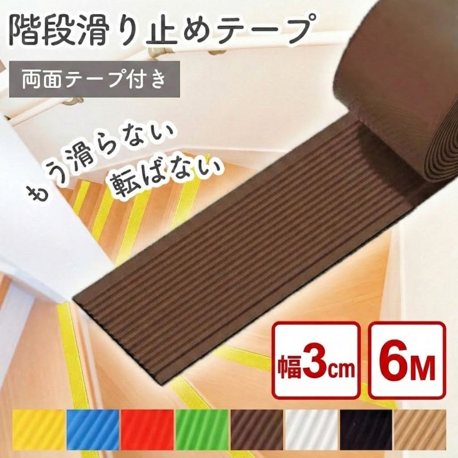 階段 滑り止め 階段滑り止めテープ すべり止めテープ 階段 滑り止めテープ ゴム 貼るだけ 強力 簡単 転倒防止 ノンスリップ 屋内 安全対策 事故防止 介護用品 高齢者 子供 幼児 階段 滑り止め 階段滑り止めテープ すべり止めテープ 滑り止めテープ ゴム 貼るだけ 強力 簡単 転倒防止 ノンスリップ 屋内 安全対策 事故防止 介護用品 高齢者 子供 幼児 階段滑り止めテープ 両面テープ付き幅3cm×5M全7色こんなお悩みを解決・高齢者の方が階段で滑ってしまわないか心配・子供がよく滑って転んでしまう・風呂場や脱衣所など水場がよく滑る・家の床がタイルでできており滑りやすい〈POINT〉厚さ3mmで安心できる! しっかりした滑り止め効果はさみで好きな長さにカット可能 はさみやカッターで必要な長さや角度にカット可能テープを剥がすだけで簡単 粘着力が強いので剝がれにくい テープを剥がして簡単に取り付け可能簡単4STEP 取り付け方法01 貼り付け箇所を掃除する 02 鉛筆であたりをつける03 はさみでカットする 04 テープを剥がして取り付け〈商品詳細〉サイズ 30mm × 5m使用温度 -30℃~80℃ 材質 ゴム 厚さ 3mm 基材 PVC性質 耐水 耐摩擦 5 1,380円 税込 送料込 カードOK レビュー37件 ratiss ラティス ![]() | ||