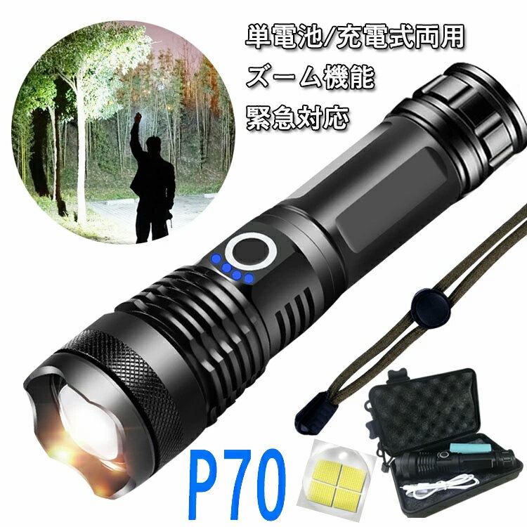 範囲照明:200ー500m 使用時間:4ー12時間(モードにより違います) スイッチ:防水仕様、ゴムスイッチ 素材:ジュラルミン 明るさ:約3000ルーメン 電池:2655電池(5000mA) 充電時間:2ー4時間 防水仕様:IPX-67 セット内容:乾電池ケース、26650充電電池*1、懐中電灯*1、充電ケーブル*1 生産国:中国 5つの調光モード 5段階の点灯モートが備え、片手でスイッチを押すと、高輝度→中輝度→低輝度→点滅→SOS→OFFに切り替えでき、シーンに合わせて切り替えでます。 どちらのモードも2秒以上長押しすると消灯できます。 高輝度/低消耗 高輝度の四核ランプは明るさ最大約3000ルーメン、光のバラツキを抑えて、より明るくかつ遠くまで照らすことができます。低消耗で、さらに耐久性も優れています。 ズーム機能 ズーム機能搭載され、頭部分は伸縮して、ご必要に合わせて照射範囲は拡大また縮小できます。 リチウムイオン充電式電池&乾電池対応可能 USB入力ポートを備え、265550充電式バッテリーを搭載し、繰り返し充電して使用できます。 また、単四電池にも対応、突然の停電など非常時の場合にも安心できます。 緊急対応/コンパクト 高硬度な素材でつくられ、緊急な事故の時に車内から脱出できます。 サイズ約4*17cm、重さ約286g、コンパクトで持ち運びはとても便利です。 幅広い大活躍 夜間の移動やウォーキング・夜釣り・キャンプなどのアウトドアにもちろん、地震や台風などの災害また停電の場合があれば、役立ちます。 2,780円 税込 送料別 カードOK レビュー14件 modanic ![]() | ||