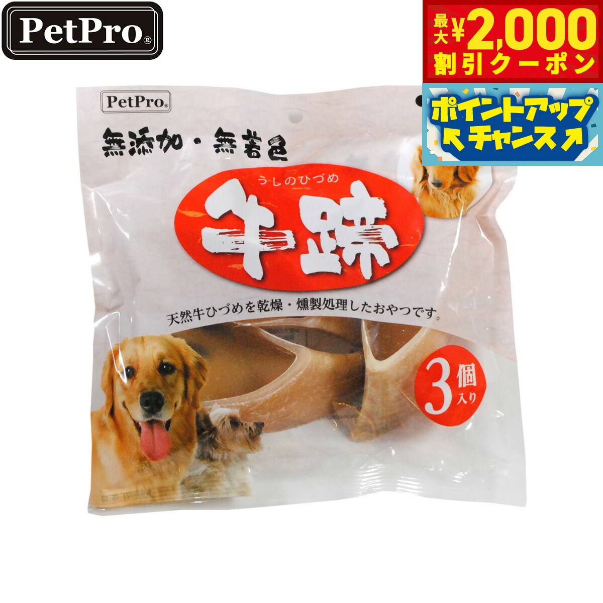 牛の蹄を乾燥させ、燻製処理した噛み応え抜群のおやつです。商品名ペットプロ 牛ひづめ 愛犬用おやつブランドPET PRO原材料牛蹄賞味期限製造から18ヶ月(メーカー出荷のタイミングによりばらつきがございます。詳細はお問い合わせください。)カロリー320kcal/100g生産国アメリカ 無添加、無着色の天然オーラルケアおやつ。天然牛ひづめを乾燥・燻製処理した噛み応え抜群のおやつです。食後の歯磨き、ストレス解消に役立ちます。【与え方】下記を目安に1日... 1,452円 税込 送料別 カードOK レビュー1件 コジコジ ![]() | ||