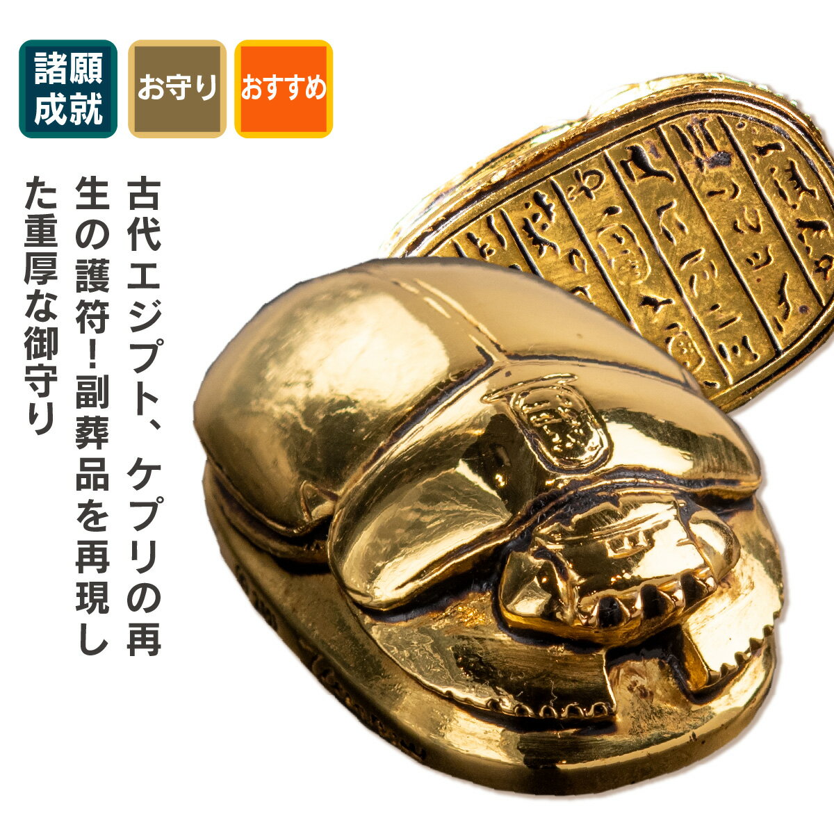 古代エジプト、ケプリの再生の護符!副葬品を再現した重厚な御守り黄金のスカラベが幸運を運ぶ!?古代エジプトで愛された太陽神の御守!商品説明古代エジプトで好まれたスカラベは幸運と復活の御守りです。重厚なレプリカは古代ロマンを感じることができます。◆開運ディレクターより・・・黄金の財宝感と古代エジプトのロマンが詰まった!古代エジプトで愛されたスカラベのお守りです。副葬品のレプリカとして制作された本格派!ロマンあふれるお守りをぜひ!商品番号 [ Item No ]T00016販売名 [ Item name ]聖甲虫スカラベ S主な素材 [ material ]ピューター(錫合金)色 [ color ]アンティークゴールドサイズ [ size ]サイズ(約):縦33mm×幅25mm×厚み16mm 重量91g商品仕様 [ spec ]本体×1 (セットパッケージの場合は記載の数量)アンティーク仕上げを施した合金製の置物です。仕上げの性質上、色ムラ等が出る場合があります。製造工程に必要なため、尾部に若干の切断跡があります。見た目は商品画像の通りです。セット購入の場合は、一つのパッケージに複数の本体が同梱になります。《単品複数購入は割引対象にはなりません!》※少量ハンドメイド生産品につき、色味や細部の仕上げ、サイズや重量等に若干の個体差があります。商品を表すキーワード[ tags ]開運グッズ 開運アイテム 運気アップ スピリチュアルグッズ 御守 たまふりや スカラベ ファラオ 黄金 ゴールド 合金 フンコロガシ エジプト 御守 お守り おまもり たまふり屋の開運グッズ スピリチュアル 運命を変える 運命を拓く 幸せを呼ぶ 幸福の習慣太陽神ケプリの化身として再生のシンボルとなった聖甲虫スカラベ「スカラベ」は、甲虫の一種を表す古代エジプト語です。動物などのフンを丸め転がすスカラベの姿が太陽を廻る天体の運行を想起させることから、古代エジプトで甲虫スカラベは太陽神と同一視されるほど神聖な存在であり“聖なる甲虫”とみなされていました。やがて太陽神として崇められるようになったスカラベは、太陽神の三形態である“真昼のラー”、“夕刻のアトゥム”と並ぶ“朝のケプリ(ギリシア名ヘプリ)”と同一視されるようになります。フンコロガシ(スカラベ)が聖甲虫とされるワケ!?スカラベは、自ら転がしたフンを巣の中へ運び、巣穴に隠したフンの中にタマゴを産みます。時が経ち、そこから新たなスカラベが誕生し巣の外へと出てきます。この生態が、陽の沈み(死)、陽の昇り(再生)を当時の人々に連想させたのです。古代エジプトでは、死はこの世の終わりではなく次の「生」への準備期間の始まりと考えられていました。つまり復活、あるいは再生は当時の人にとって大変重要なこととされていたのです。夕刻に沈み、翌朝また昇る太陽が神格化され、その象徴であるスカラベが神聖視されたのは、当時のこうした思想が大きく影響しているのです。スカラベを護符とすることで守護と繁栄を願った!神聖な甲虫 スカラベは、当時の人々から絶大な人気を誇るようになり、その姿をかたどった様ざまな護符や装身具が親しまれました。死者を埋葬する際には、心臓の上にスカラベの護符(ハートスカラベ)を置き、その復活を願うという風習も生まれました。そのためスカラベの護符の裏側には死者の再生を願うヒエログリフ(聖刻文字)が刻まれるようになったのです。スカラベの護符は副葬品として数多く発見されていますが、生きる者たちの生命力や不死の護符として、また幸福や金運を願う装身具としても日常的に用いられていたことがわかっています。古代エジプトのロマン溢れる聖なる護符を貴方に!たまふり屋がお届けするスカラベの護符は、小ぶりな「Sサイズ」(3cm)と存在感抜群の「Lサイズ」(7.5cm)の大小2サイズ。どちらも重厚なピューター(錫を主成分とする合金)に金色仕上げを施したものなので、手にした時の重量感に驚くことでしょう。Sサイズは鞄の中などに入れて携帯するのに最適な大きさ。Lサイズはリビングのキャビネットや書斎のデスク、あるいはベッドサイドテーブルなど、ご自身が長い時間を過ごす場所に置くことをお薦めします。ご家族の皆様それぞれが所持することによって家族の皆様を守る護符となり、また幸福や金運のシンボルとして、古代エジプトの王 ファラオの願いのごとく末永い繁栄を授けることでしょう。 1,650円 税込 送料別 カードOK レビュー4件 開運縁起の専門店 『たまふり屋』 ![]() | ||