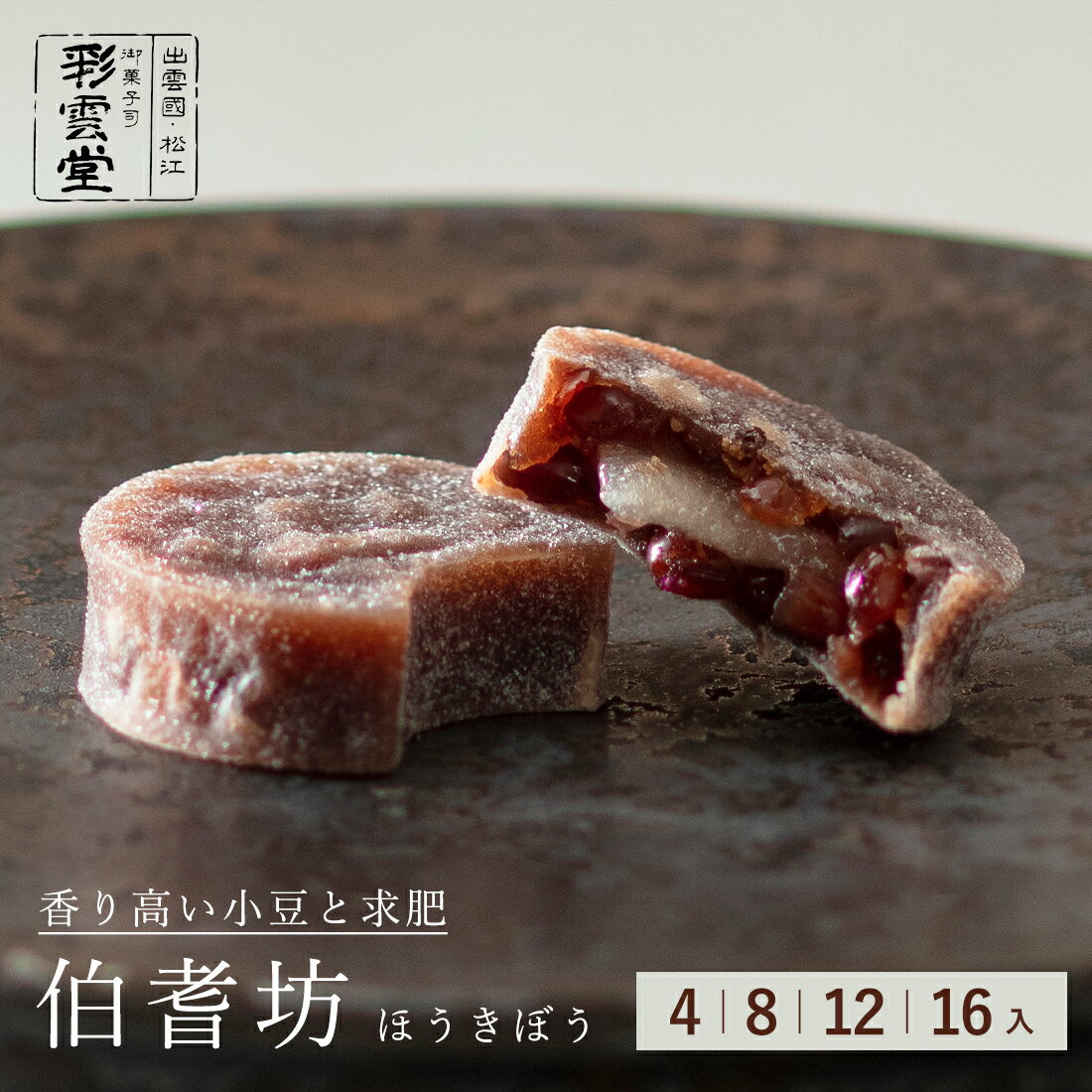 574. 風味の良い小豆の中に柔らかい求肥を入れた素朴な和菓子です。 伯耆坊もち 求肥 入り 小豆 スイーツ 和菓子 ギフト 老舗 彩雲堂 お取り寄せ 島根 松江 あん 餡 求肥 お茶うけ 茶菓子 茶道 伯耆坊4入、8入は 手提げ袋ミニに入れることができます。 伯耆坊12入、16入は 手提げ袋小に入れることができます。 名称 伯耆坊 賞味期限 出荷日を含め15日 保存方法 直射日光・高温多湿を避けて保存してください。 また、開封後は、お早めにお召し上がりください。 原材料名 砂糖(国内製造)、小豆、米粉、水飴、麦芽糖、寒天、砂糖結合水飴、澱粉/酵素(大豆由来) 栄養成分表示 1個平均32gあたりエネルギー121kcal、たんぱく質1.6g、脂質0.2g、炭水化物28.... 1,407円 税込 送料別 カードOK レビュー6件 彩雲堂 楽天市場店 ![]() | ||