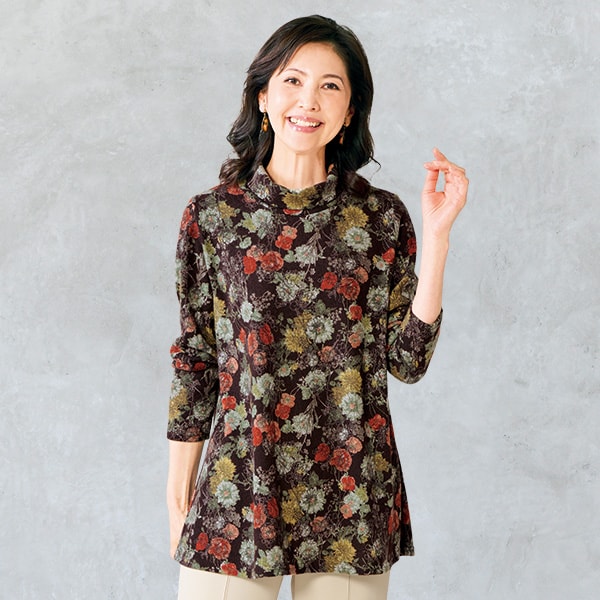 鮮やかな花柄プリントが優しい印象!鮮やかな花柄プリントが優しい印象!ウォーム感のある起毛素材を使用したAラインシルエットの長袖プルオーバー。タートルネックで首元まで暖かです。スペック【サイズ(約)】バスト(適応)、肩幅、着丈、袖丈<M〜L>104(79〜94)cm、36cm、72cm、54cm<LL>110(93〜101)cm、37cm、73cm、54cm■表地:ポリエステル95%・ポリウレタン5%◆裏地なし◆韓国製送料660円(通常)注意事項※商品によって柄の出方が異なる場合がござ... 4,378円 税込 送料別 カードOK はぴねすくらぶ 楽天市場支店 ![]() | ||