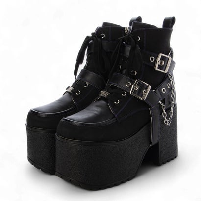 存在感のある厚底ソールで、歩きやすさとデザイン性を兼ね備えた一足。着脱可能なベルトとチェーン付きで、ハードにもシンプルにもアレンジできる万能アイテムです。内側ジッパー仕様で脱ぎ履きもスムーズ。同デザインの小さいサイズも展開中(No.446)27cm : 【重さ】860g / 【ヒール寸】11.5cm / 【プラットフォーム高さ】8cm / 【筒丈】15cm / 【筒周り】22cm別カラーはこちら! ブラック アニマル(シルバーコンビ) 10,780円 税込 送料別 カードOK LOCOMALL(ロコンド公式ストア) ![]() | ||