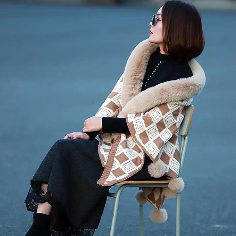 ショール レディース 秋冬 ニット ケープ ストール 大判 菱形 格子柄 切り替え 暖かい ひざ掛け エレガント ベージュ ブラック グリーン 5,118円 税込 送料込 カードOK ブリルビ ![]() | ||