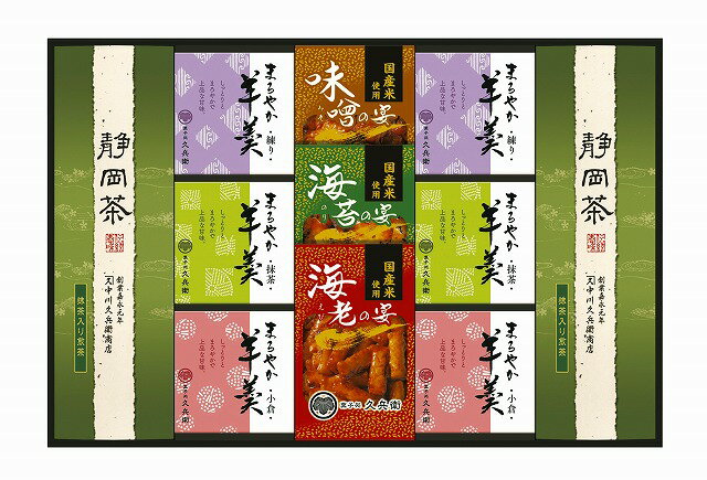 ●材質/●セット内容/抹茶入り煎茶80g×2・あられ(海老・海苔・味噌)各12g・羊かん(抹茶・練り・小倉)60g×各2 【小麦・えび】●箱サイズ/箱292×448×42mm●賞味期間/240日間●原産国/JPN●重量/1055g国産米だけで作った3種類のあられ、夏でも冬でも楽しめるまろやか羊かんと美味しい静岡茶を詰合せました。 6,048円 税込 送料別 カードOK レインボーやまむら ![]() | ||