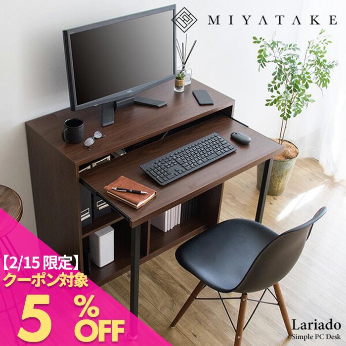 幅90cmのコンセント付きの天板とキーボードやノートが置いて出し入れできるスライダー、雑誌やファイルも入る足元収納が付いた便利なパソコンデスク『Lariado(ラリアード)』。 スライダーはA4の本やノートも置ける広々サイズでノートパソコンも置けます。使わないときは奥行き39.5cmと邪魔にならない省スペースサイズで書斎はもちろんリビングや寝室でのご使用もおすすめ。一人暮らしの方にも最適です。 シンプルで落ち着きのあるブラウンの木製デスクはどんなお部屋にも馴染みます。 商品名シンプルPCデスク Lariado(ラリアード) サイズ幅90×奥行39.5×高さ82.6cm 材質合成樹脂化粧合板(メラミン樹脂)、スチール(粉体塗装) 耐荷重天板:10kg、スライダー:10kg、ラック上段:15kg、下段:15kg 備考組立式(約40分) ※こちらの商品は、メーカー直送商品となります。納品書に関しましては商品に同封されません。ご希望のお客様はお手数ですがご連絡いただけますようお願いいたします。※北海道・沖縄・離島のお届けに関しましては別途中継料金が発生いたします。 スライダー付きデスク パソコンデスク 木製デスク PCデスク 学習机 勉強机 テーブル スライドデスク 作業机 オフィス家具 収納付き オフィスデスク ブラウン ブラック コンセント パソコンデスク 机 デスク 書斎デスク 学習机 PCデスク 収納付き 木製デスク 勉強机 収納付きPCデスク 学習デスク オフィスデスク ワークデスク 木製 ラック付き デスク パソコン机 テレワーク 在宅勤務TOP > デスク > シンプルPCデスク Lariado(ラリアード) 幅90cmのコンセント付きの天板とキーボードやノートが置いて出し入れできるスライダー、雑誌やファイルも入る足元収納が付いた便利なパソコンデスク『Lariado(ラリアード)』。 スライダーはA4の本やノートも置ける広々サイズでノートパソコンも置けます。使わないときは奥行き39.5cmと邪魔にならない省スペースサイズで書斎はもちろんリビングや寝室でのご使用もおすすめ。一人暮らしの方にも最適です。 シンプルで落ち着きのあるブラウンの木製デスクはどんなお部屋にも馴染みます。 商品名シンプルPCデスク Lariado(ラリアード) サイズ幅90×奥行39.5×高さ82.6cm 材質合成樹脂化粧合板(メラミン樹脂)、スチール(粉体塗装) 耐荷重天板:10kg、スライダー:10kg、ラック上段:15kg、下段:15kg 備考組立式(約40分) 15,799円 税込 送料別 カードOK レビュー3件 【公式】宮武製作所 楽天市場店 ![]() | ||
