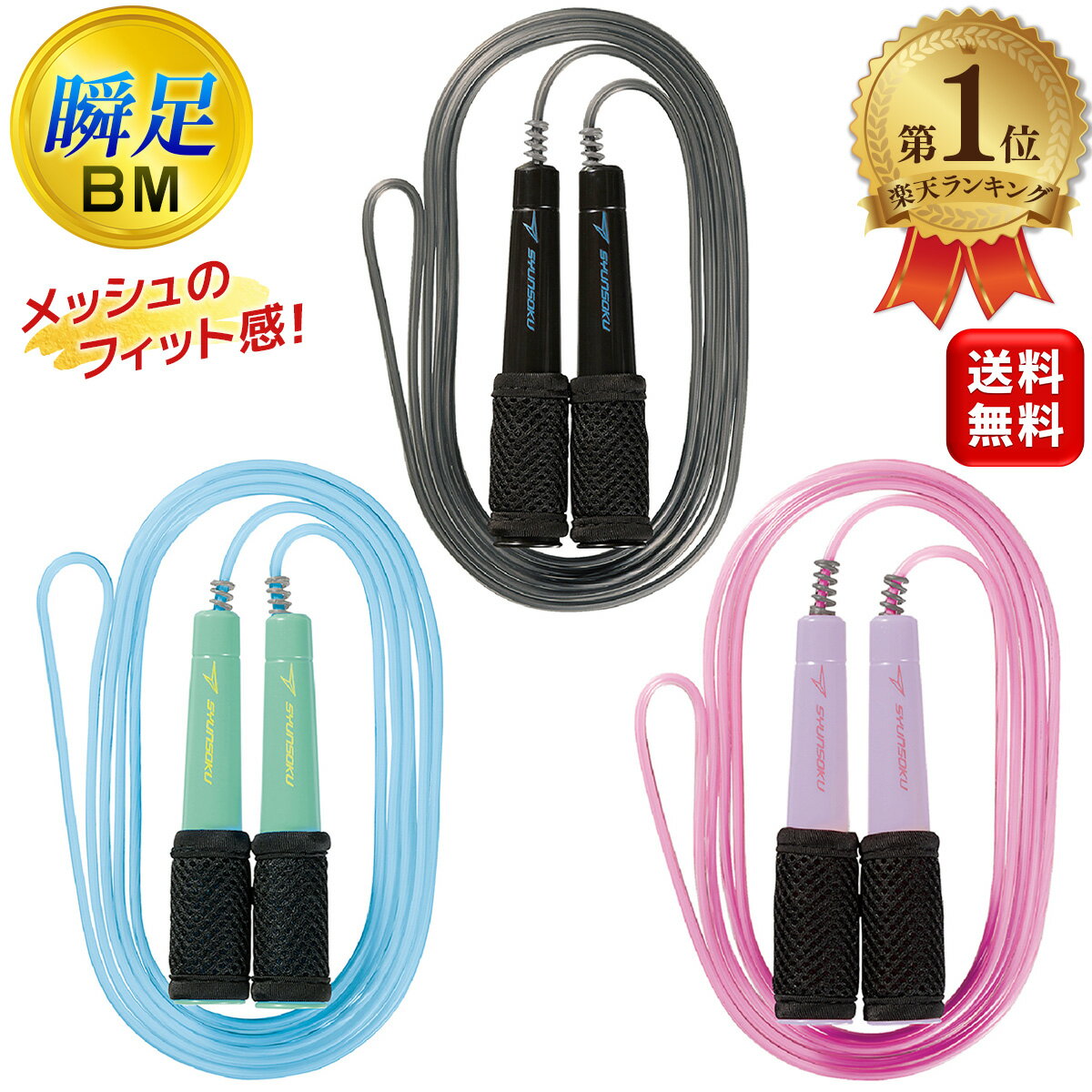 商品情報商品名瞬足なわとび BM商品サイズ全長2m70cm商品重量97g(包装資材含む)材質ロープ:PVCグリップ:PP回転パーツ:PE、PP滑り止め:ポリエステル瞬足なわとび BM ブラックメッシュ 縄跳び 全長2m70cm 瞬足 なわとび SYUNSOKU 日本製 送料無料 九面体ロープが軽快な風切り音を起こしリズミカルに跳べる!スノーブルー スペースブラック ベリーピンク 瞬足なわとび BM ブラックメッシュ 縄跳び 瞬足 なわとび SYUNSOKU ・爽快なメッシュのフィット感・蒸れにくく握りやすい... 920円 税込 送料込 カードOK レビュー23件 エバーセレクト ![]() | ||