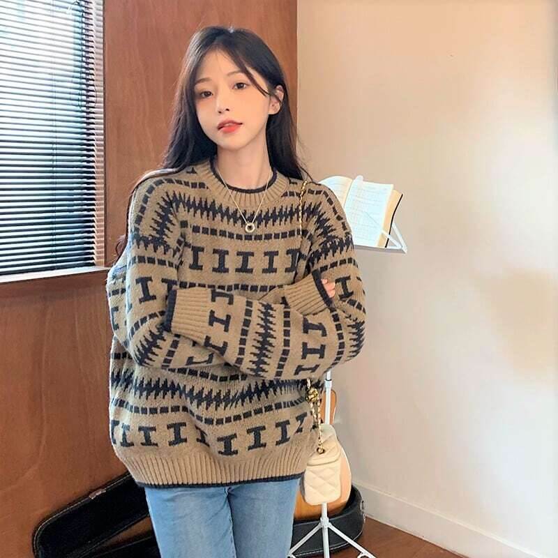 総柄デザインが目を引く、幾何学柄のレトロなニットセーター。クルーネックでゆったりとしたシルエットが特徴で、古着女子やカジュアルなスタイルがお好きな方におすすめです。大人っぽさとこなれ感を演出することができ、ヴィンテージライクな雰囲気も持ち合わせています。さりげなくレトロな要素が取り入れられているので、おしゃれなスタイリングにぴったりです♪■サイズ ワンサイズ肩幅52cm バスト106cm 袖丈54cm 着丈56cm※目安とお考えください■カラー... 3,700円 税込 送料別 カードOK ORIENTAL WIND ![]() | ||