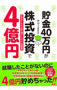貯金40万円が株式投資で4億円 単行本 の詳細 出版社: ダイヤモンド社 レーベル: 作者: かぶ1000 カナ: チョキンヨンジュウマンエンガカブシキトウシデヨンオクエン / カブ セン サイズ: 単行本 ISBN: 4478112014 発売日: 2021/01/01 関連商品リンク : かぶ1000 ダイヤモンド社 1,360円 税込 送料込 カードOK レビュー1件 ネットオフ 送料がお得店 ![]() | ||