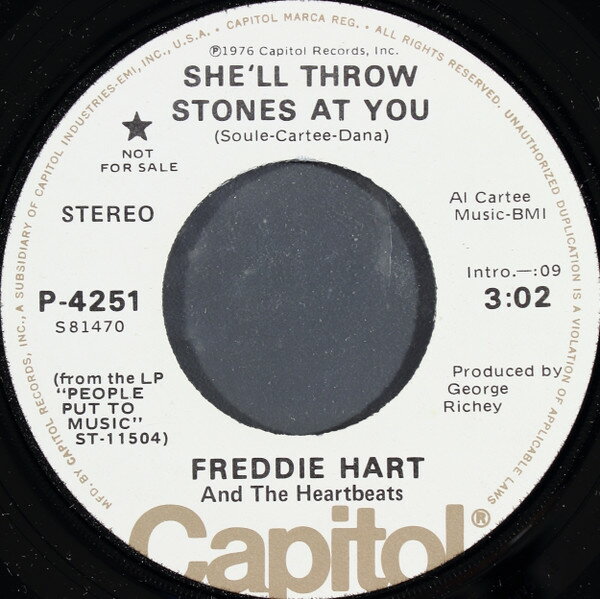 ・アーティスト Freddie Hart & The Heartbeats ・タイトル She'll Throw Stones At You ・レーベル・型番 CAPITOL P4251PROMO ・フォーマット 7インチレコード ・コンディション(盤) 良い (VG+) ・コンディション(ジャケット) プレインカバー(元ジャケット/カバー無し) ・コンディション(帯) オビなし ・特記事項 【レーベルにシール付着】【盤に浅い跡】 サンプル画像です。実際の商品の画像ではありません 商品写真はバーコー... 701円 税込 送料別 カードOK レコードシティ 楽天市場店 ![]() | ||
