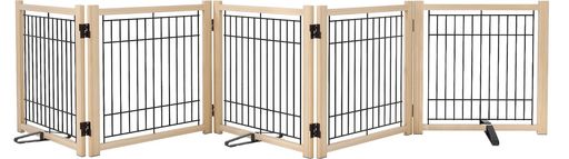 【商品仕様】材質:純天然の木材、丈夫な鉄製。色:さまざまな装飾スタイルに適した原木色、ブラック。展開時サイズ:高さ58cmx幅292cm。収納時サイズ:高さ58cmx幅58cm。重量:(約)7.4kg。セット:5枚パネル補助スタンド3個。 【ペットに優しい天然木】天然木で環境に優しいペットゲ-トです。柵の棒が鉄製で、デザインもシンプルなで、どんなお部屋にもマッチします。刺激的なにおいがなく、塗料なども使用していないので赤ちやんにとっても安全・安心です。ペットにもやさしい。 【安定感がたっぷり】全木製のペットフェンスに改良を加え、柵の棒部分を鉄製にしたことで、ペットフェンスがより安定し、倒れにくいようになった。柵の棒には防腐防錆の技術が施されているので、耐久性では心配ありません。 【置くだけのペットゲート】置きたい場所にさっと置くだけ。ペットゲートを伸ばして30秒ですぐに使用できます。折りたたみ角度を調節すれば広くも狭くも使えてとても便利です。 【折りたたみ式で移動自由】完全に折りたたむことができるので、移動や保管に便利です。置き型式なので持ち運びが便利です。 15,517円 税込 送料別 カードOK ベストプライスオンラインストア ![]() | ||