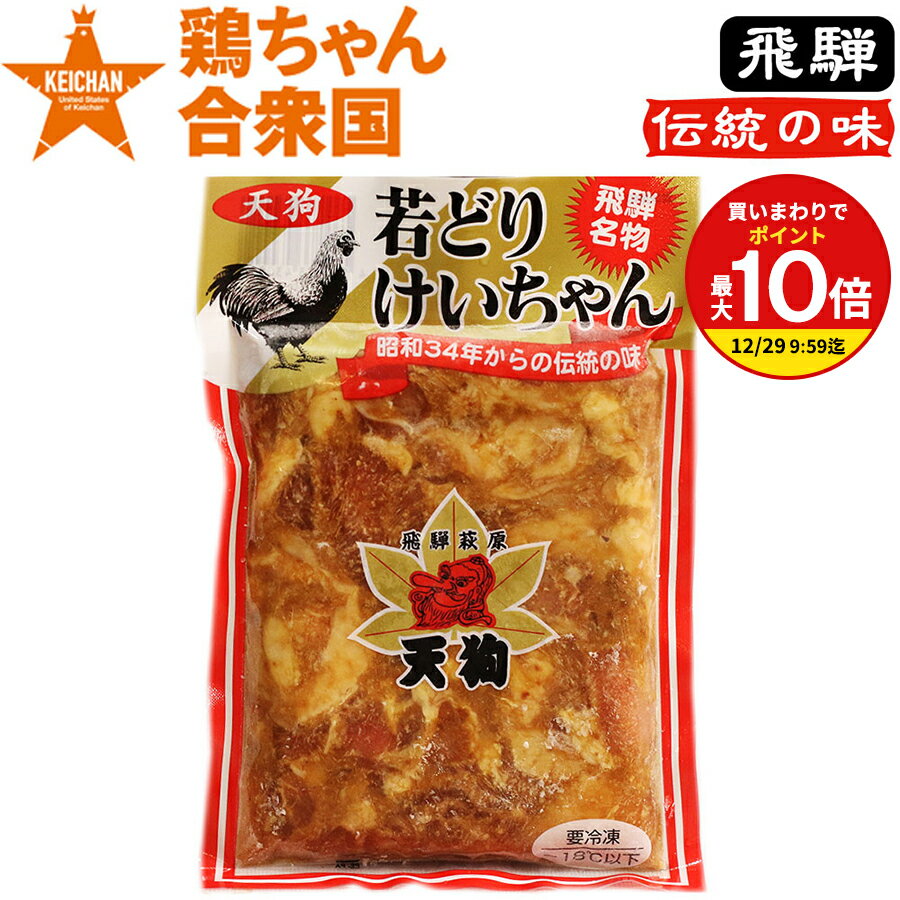 【商品名:天狗 若どりのけいちゃん】 岐阜県下呂市 天狗 厳選若鶏を秘伝のみそたれで味付け 昭和34年発売開始以来、厳選した若鶏を使用し、 秘伝のみそたれにて味付け ●商品名 天狗 若どり けいちゃん ●名称 鶏肉味付 ●原材料名 鶏肉(国産)、みそ、醤油、みりん、砂糖、ごま、日本酒、にんにく、しょうが、唐辛子、調味料(アミノ酸等) (原材料の一部に大豆・小麦を含む) ●内容量 250g ●消費期限 枠外上部に記載 ●保存方法 要冷凍(−18℃以下) ●製造者 株式会社天狗 岐阜県下呂市萩原町萩原1353-1 電話 0576-52-1103 FAX 0576-52-3481 【調理について】 あらかじめ処理してありますので中心部まで十分に加熱してお召しあがりください。 【お召しあがり方】 適量のキャベツ、玉ねぎ、もやし、季節の野菜などとともに鉄板・ホットプレートなどで焼きながらお召し上がりください。 このほか、から揚げや鍋物にも。 【冷凍便】対応商品です こちらの商品はメール便・常温便・冷蔵便商品とは同梱できません。 ※冷凍便商品以外と同梱でのご注文を頂きましてもクール宅急便代(北海道・沖縄はさらに別途料金)が発生いたします。 ご確認の上、ご注文くださいませ。 ※パッケージは予告なく変更になる場合がございます。 >>>今すぐ『天狗若どりのけいちゃん』をお買い上げの方はこちら 800円 税込 送料別 カードOK レビュー4件 岐阜・中津川 ちこり村 ![]() | ||