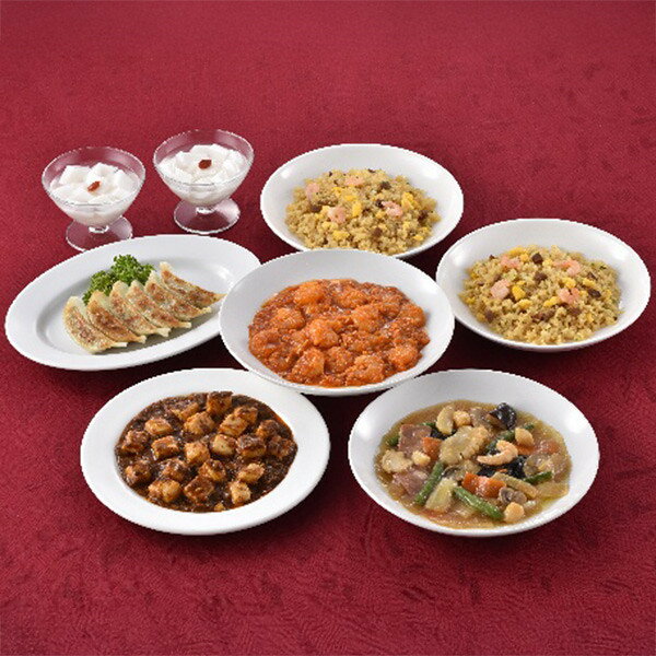 【商品詳細】中華料理の名店「赤坂四川飯店」が監修した本格中華料理10種類をセットにしてお届けします。どれもこだわりの味に仕上げています。保存方法:冷凍商品区分:食品内容量:餃子120g(6個入)×3、本格四川麻婆豆腐150g×1、乾焼蝦仁(エビチリソース)150g×1、本格八宝菜150g×1、酢豚150g×1、小籠包(4個入)140g×1、手包み肉まん240g(2個入)×2、ふっくら五目炒飯(200g×2)×2、担々麺セット326g(麺200g、ごまだれ38g、液体スープ58g、ザージャン(肉みそ)30g入)×2、杏仁豆腐500g×1原材料(アレルギー表記含む):【餃子】野菜[キャベツ(国産)、白菜、にら、長ねぎ、にんにく、しょうが、玉ねぎ]、豚肉、ラード、豚脂、粒状大豆たん白、オイスターソース、植物油(ごま油、大豆油)、しょう油、チキンパウダー、でん粉、味噌、昆布茶、ゼラチン、砂糖、食塩、香辛料、焼酎、皮(小麦粉、還元水飴、大豆油、こんにゃく粉)/酒精、トレハロース、調味料(アミノ酸等)、重曹、カラメル色素、香料、酸味料、(一部に小麦・豚肉・大豆・ごま・鶏肉・ゼラチンを含む)【本格四川麻婆豆腐】冷凍豆腐[大豆(国産)、でん粉]、大豆油、豚肉、清酒、長ねぎ、豆板醤、しょうゆ、ポーク・チキンエキス、香辛料、トウチ、砂糖、チキンパウダー、味噌、にんにく、オイスターソース、しょうが/糊料(加工デンプン)、調味料(アミノ酸等)、酸化防止剤(ビタミンE)、凝固剤(塩化マグネシウム)、カラメル色素、酸味料、香料(一部に小麦・大豆・豚肉・鶏肉・りんごを含む)【乾焼蝦仁】えび(輸入)、トマトケチャップ、野菜(トマト、ねぎ、しょうが、にんにく)、大豆油、卵、砂糖、でんぷん、豆板醤、小麦粉、酒、チューニャン(もち米、酒、米こうじ、砂糖)、ポーク・チキンエキス、食塩、醸造酢、香辛料、しょう油、脱脂粉乳、揚げ油(大豆油)/増粘剤(加工デンプン、増粘多糖類)、調味料(アミノ酸等)、ベーキングパウダー、酸味料、(一部に小麦・卵・乳成分・えび・大豆・豚肉・鶏肉を含む)【本格八宝菜】魚介類(イタヤ貝、えび、いか)、野菜[白菜(国産)、いんげん、たけのこ、にんじん]、豚肉、きくらげ、ポーク・チキンエキス、マッシュルーム、ふくろたけ、大豆油、清酒、ハム、しいたけ、コーンスターチ、醤油、食塩、オイスターソース、香味油、砂糖、中国醤油、チキンパウダー、香辛料/増粘剤(加工デンプン)、調味料(アミノ酸等)、着色料(コチニール、ラック、カラメル)、香料、酸味料、発色剤(亜硝酸Na、硝酸K)、(一部に小麦・卵・乳成分・えび・大豆・豚肉・いか・鶏肉・りんごを含む)【酢豚】野菜[たまねぎ、にんじん、たけのこ、ピーマン]、豚肉(国産)、砂糖、トマトケチャップ、しいたけ、しょう油、でん粉、醸造酢、小麦粉、酒、食塩、卵、香辛料、揚げ油(大豆油)/増粘剤(加工デンプン、増粘多糖類)、酸味料、調味料(アミノ酸等)、ベーキングパウダー、(一部に小麦・卵・大豆・豚肉を含む)【小籠包】豚肉(輸入)、ゼラチン、しょう油、砂糖、オイスターソース、ごま油、チキンコンソメ、しょうが、長ねぎ、香辛料、皮(小麦粉、でん粉、砂糖、ラード、植物油)/調味料(アミノ酸等)、カラメル色素、(一部に小麦・乳成分・大豆・牛肉・豚肉・鶏肉・ごま・ゼラチンを含む)【手包み肉まん】皮[小麦粉(国内製造)、砂糖、イースト、ラード、食塩]、豚肉、野菜(玉ねぎ、しょうが、長ねぎ)、しいたけ、パン粉、しょう油、植物油(ごま油、大豆油)、ラード、砂糖、清酒、食塩、粒状植物性たん白、中国醤油、醸造酢、ゼラチン、香辛料/ベーキングパウダー、調味料(アミノ酸)、酸味料、(一部に小麦・乳成分・大豆・豚肉・ごま・ゼラチンを含む)【ふっくら五目炒飯】精白米(国産)、炒り玉子、えび、焼豚、鶏卵、ねぎ、乾しいたけ、しょうゆ、中華スープの素、砂糖、食塩、食用油脂、香味油、粉末しょうゆ、でん粉、香辛料、いため油(なたね油、食用調合油)/調味料(アミノ酸等)、加工でん粉、着色料(カラメル、クチナシ)、pH調整剤、香辛料抽出物、(一部に小麦・卵・えび・ごま・大豆・鶏肉・豚肉含む)【担々麺セット】めん[小麦粉(国内製造)、小麦たん白、卵白粉/かんすい、クチナシ色素]、スープ[(液体スープ(しょうゆ、ラー油、発酵調味料、唐辛子、中華スープの素、醸造酢、食塩)、ごまスープ(ごま、大豆油)/調味料(アミノ酸等)、アルコール、香辛料抽出物、増粘剤(キサンタンガム)、香料、酸化防止剤(ビタミンE)、カラメル色素]、具(豚肉、大豆油、味噌、しょうゆ、砂糖、清酒/カラメル色素)、(一部に小麦・卵・大豆・豚肉・鶏肉・ごまを含む)【杏仁豆腐】糖類[ぶどう糖果糖液糖(国内製造)、果糖ぶどう糖液糖、砂糖]、乳等を主要原料とする食品、杏仁霜、/ゲル化剤(増粘多糖類)、酒精、増粘剤(カラギーナン、加工デンプン)、乳化剤、酸味料、香料、乳酸Ca、酸化防止剤(ビタミンC)、(一部に乳成分・大豆を含む)メーカー名:上郡物流センター生産国・加工国:日本賞味期限:出荷日より90日【代引きについて】こちらの商品は、代引きで