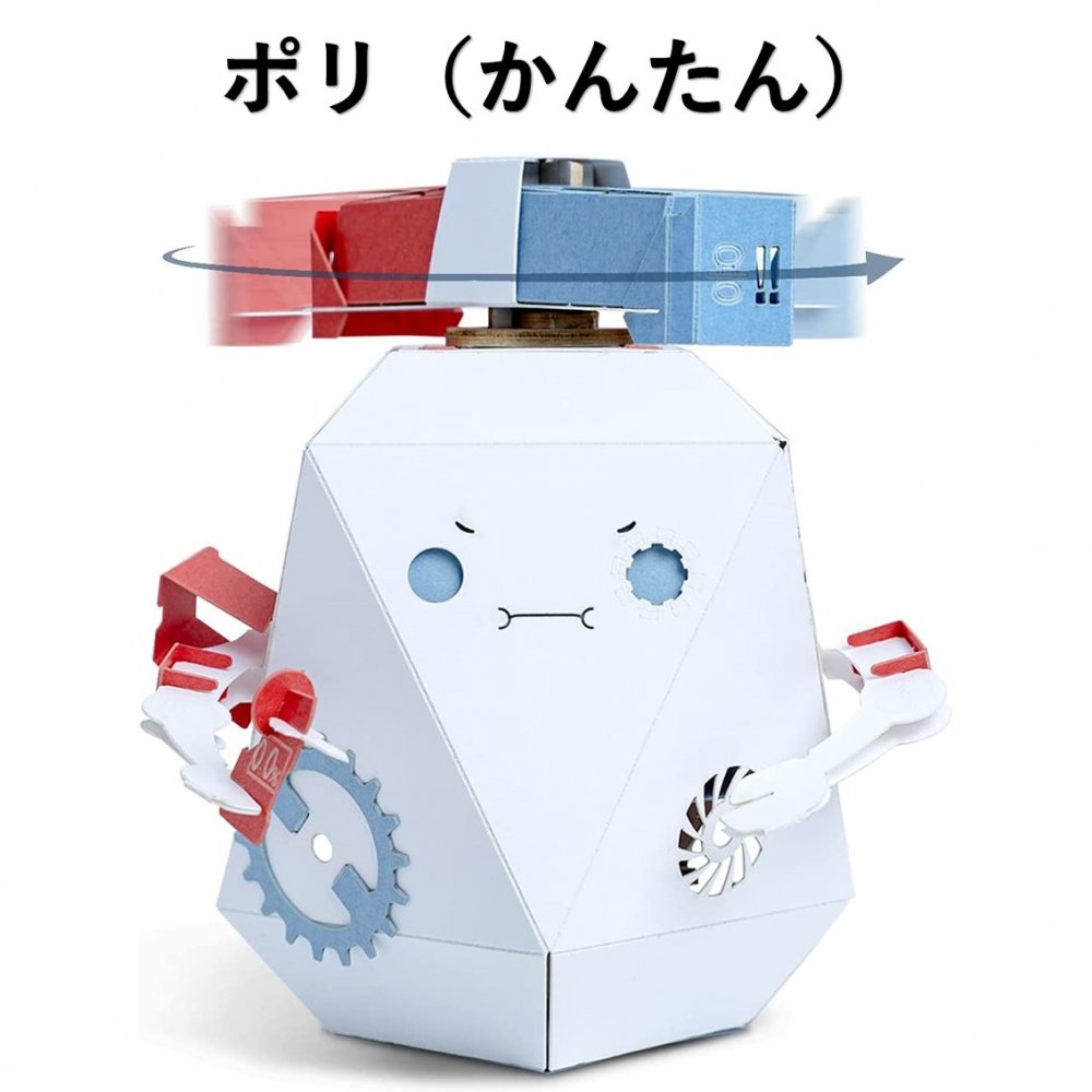 電池なしで動く!韓国生まれのキュートなペーパーロボット!日本語説明書&組み立て動画のQRコード付き! ハサミ、ノリを使わずに組み立てられる。材質は紙なので、環境に優しく、お子様にも安心です。(ロボット内部の構造にも紙が使用されています。) このペーパーロボットは、韓国のRobotry社の商品で、様々な受賞歴を持つ人気のおもちゃです。(第4回韓国トイアワード:優秀玩具賞受賞、Singapore IR run by KILSA:1位等) パーツを台紙から取り外し、手で組み立て、ロボットを動かすことで、遊びながら機械の構造とロボットの仕組みを学ぶことができます。 ロボットを最初から最後まで作る過程を通して、問題解決能力を身に着け、自信にもつながります。 また、2Dの紙のキットを組み立てて3D作品にすることで、空間認識能力を養うことができます。 キャラクターは全部で11種類!キャラクターによって、動く箇所や仕組みが異なるので、いろいろなロボットを集めて、動き方を比べてみるのも楽しいです。 難易度は、簡単に作れるものから難しいレベルのものまで様々です。(詳細は商品仕様欄をご参照ください。) 【商品の仕様】 メーカー:Robotry(ロボツリー) 商品名:ポリ(Poli) ポリのキャラクター:積極的で冒険心のある警察官ロボット。 難易度:簡単(初級レベル) 対象年齢:7歳以上 仕組み:ベベルギア(かさ歯車) 動作:ゼンマイを回すと、ポリのパトランプが回転します。 組み立て後の商品サイズ:約9.5 x 10.7 x 10.5 cm 重量:約131 g 材質:紙 490円 税込 送料込 カードOK レビュー1件 Waku Waku Shop 楽天市場店 ![]() | ||