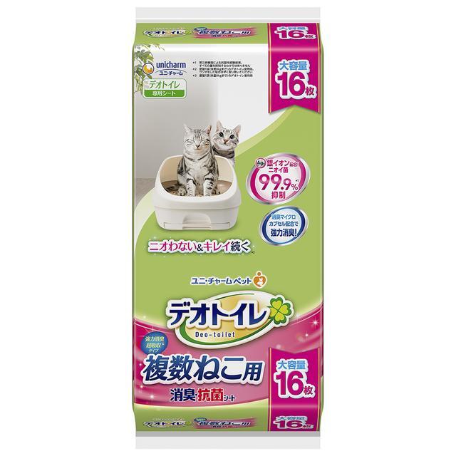 ※実際にお届けする商品とパッケージデザインが異なる場合がございます。 原材料 ポリオレフィン・ポリエステル不織布、綿状パルプ、吸水紙、高分子吸水材、ポリエチレンフィルム、抗菌剤、ホットメルト接着剤、香料 原産国 JAPAN 用途 猫の室内トイレ用シート 使用上の注意 ●用途以外には使用しないでください。 【!】本製品の香りが猫ちゃんやお客様に合わない場合は、使用を中止してください。その際は、香り付きではない【デオトイレ消臭・抗菌シート】へ変更いただくことをお勧めします。 ●【消臭・抗菌シート】は【デオトイレ】専用です。単体で犬用トイレシート(ペット用トイレシート)として使用しないでください。 【!】本品は食べられないので、飲み込まないでください。万が一、飲み込んだ場合は医師や獣医師にご相談ください。 JANコード 4520699678183 1週間ずっと、ニオイこもらない*1 売上No.1*2 *1.愛猫1頭(体重8kgまで)のデオトイレ使用時。ウンチをした場合は早く取り除いてください *2.インテージSRI+調べ ペット用品市場(ペット種類:猫、猫の砂+防臭シート+システムトイレ)2017年11月〜2022年10月累計販売金額ブランドランキング 「消臭抗菌シート」のニオわない独自技術 シートは銀イオン配合。オシッコから発生するニオイ菌を99.9%抑制!※1 ※1 ニオイ菌とは尿からアンモニアを発生させやすい菌のこと。第三者機関による抗菌性試験結果。すべての菌を抑制するわけではありません シートの特徴 香りでマッチング消臭 ニオイ菌99.9%抑制※1 銀イオン配合 香りでマッチング消臭 1週間交換不要※2 ※1 ニオイ菌とは尿からアンモニアを発生させやすい菌のこと。第三者機関による抗菌性試験結果。すべての菌を抑制するわけではありません ※2 愛猫1頭(体重8kgまで)のデオトイレ使用時。ウンチをした場合は早く取り除いてください。 サンドとシートの交換の際は別売りのデオトイレ専用品をお使い下さい。 デオトイレの専用品以外のものをお使いいただいても、消臭・抗菌の性能が十分に発揮できないばかりか、尿モレなどのトラブルの原因となります。 デオトイレのシート比較一覧表 1週間分のおしっこをしっかり吸収 ニオイ菌99.9%*抑制!強力消臭 シートタイプで手を汚さず取り換え簡単 *第三者機関による抗菌性試験結果。すべての菌を抑制するわけではありません まとめ買いが多い方は大容量タイプがオススメ! いつも使っている商品だから、何回も買いに行くのが面倒・・・そんな方は大容量タイプがオススメ! ※パッケージは予告なく変更する事があります 22,836円 税込 送料別 カードOK ユニ・チャームダイレクトショップ ![]() | ||