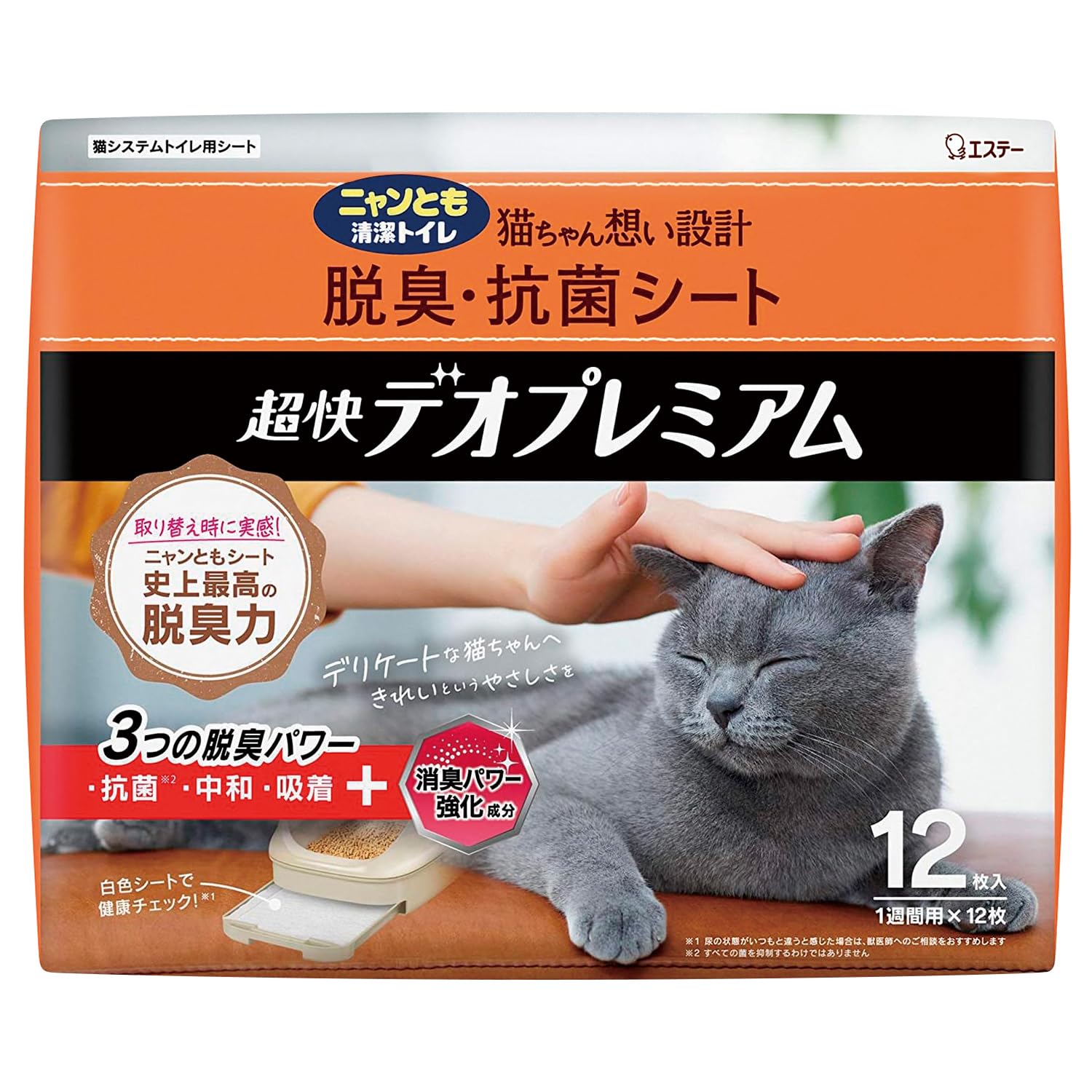 ホワイト/12枚入(エステー)/なし・Size:12枚入(エステー)・パッケージ個数:1・1週間取り替えなしでもニオわない(1) 1●チップ、シートによる不快な尿臭の脱臭効果(愛猫1頭に使用する場合)●ウンチをしたときは早く取り除いてください。説明 商品紹介 猫ちゃん想い設計超快デオプレミアム商品特長 ●消臭パワー強化成分配合で、取り替えのときでもニオわない 機能性香料による効果で消臭パワーをさらに強化。 ●3つの脱臭パワーでオシッコのニオイを強力脱臭 ?抗菌脱臭:ニオイの元を絶つ 中和脱臭:ニオイ立ちをおさえる 吸着脱臭:ニオイを吸着し閉じ込める抗菌(1)効果でツンとくるアンモニア臭もカット。 ●オシッコの色がわかりやすい白色シート 表面が白くオシッコの色がわかりやすいので、健康チェックが簡単にできます。 ●パワフル吸収で1週間取り替え不要(5) 1枚で1週間分のオシッコをパワフルに吸収して閉じ込めます。(5) 週1回の交換でお手入れラクラク。 1すべての菌を抑制するわけではありません 5愛猫1頭に使用する場合 「ニャンとも清潔トイレ」の専用トイレと一緒にお使いください 使用方法 ご使用前に必ずお読みください。 「ニャンとも清潔トイレ」のトイレ本体には、必ず専用のチップ、シート(またはマット)をお使いください。 ご注意 *他の吸収シート等を使うとサイズが合わず、脱臭・ご注意吸収効果が充分発揮されないばかりか、尿もれなど、トラブルの原因となる恐れがあります。 交換方法引き出し付きタイプの場合 ●尿がこぼれる場合があるので、新聞紙の上など、汚れてもかまわない場所で行ってください。 ●「ニャンとも清潔トイレ」の印刷がある面を下にして敷いてください。 ●中の吸収体がかたよることがあるので、シートを振り広げないでください。 ●シートを切ると吸収体の粉が飛び散るので、切らずにお使いください。 ?引き出しを開け、使用済みシートを取り出してください。 シートの四隅を引き出しに合わせ、フチを立てて、しわが寄らないように敷いてください。 シートがずれないよう、引き出しをゆっくり閉めてください。勢いよく閉めると、シートがずれ、尿がもれる原因になります。 使用後の処理方法 ・本品は水に溶けないので水洗トイレに流さないでください。 ・本品は燃えるごみとして処理できますが、自治体により廃棄物の分類が異なる場合があるので、お住まいの地域のルールに従ってください。 シート使用期間の目安 愛猫1頭の場合:1枚で約1週間 愛猫2頭の場合:1枚で約3~4日間 愛猫の尿量は、体重や季節、年齢等によって変化します。尿量が多い場合は、シートが吸収しきれなくなることがあるので、早めに交換してください。 3,772円 税込 送料込 カードOK NRFオンラインショップ ![]() | ||