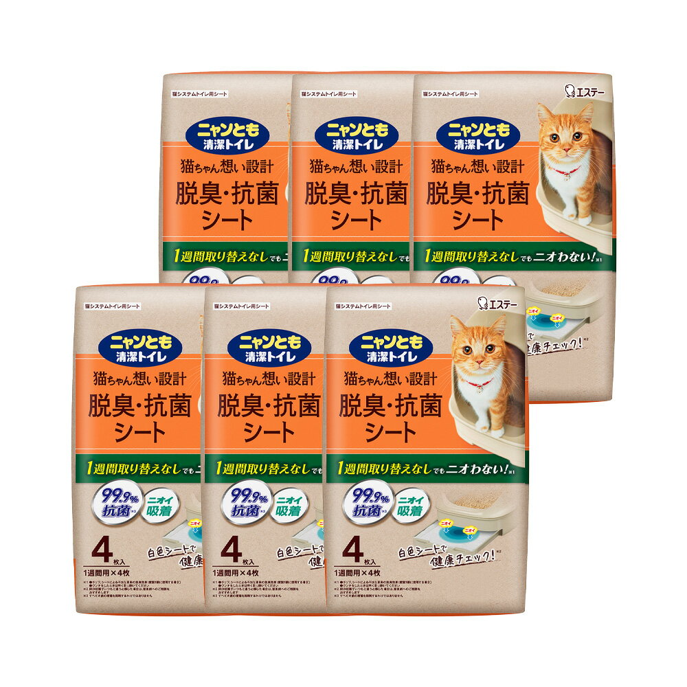 メーカー:エステー1週間取り替えなしでもニオわない!ニャンとも清潔トイレ 脱臭・抗菌シート 4枚×6袋対象猫特長●1週間取り替えなしでもニオわない愛猫用吸水シーツです。 ●シート表面が白くオシッコの色がわかりやすいので、健康チェックが簡単にできます。 ●1枚で1週間分のオシッコをパワフルに吸収して閉じ込めます。 ●抗菌*脱臭・中和脱臭・吸着脱臭の「3つの脱臭パワー」で1週間ず〜っとニオいません。 *すべての菌の増殖を抑制するわけではありません。 ●使いやすいシートタイプだから、小さくたためて捨てやすいです。燃えるごみとして処理できます。 (ただし、処理の方法が異なる場合がありますので、お住まいの地域のルールに従ってください。) ●専用トレーにチップとシートをセットでご使用いただけます。数量4枚×6袋サイズ(約)縦45cm×横35cm材質ポリオレフィン不織布、綿状パルプ、吸水紙、高分子吸水材、ポリエチレンフィルム、ホットメルト溶着剤、抗菌剤、中和消臭剤、吸着消臭剤生産国日本シート使用期間の目安愛猫1匹の場合:1枚で約1週間 愛猫2匹の場合:1枚で約3〜4日間 愛猫の尿量は、体重や季節、年齢等によって変化します。尿量が多い場合は、シートが吸収しきれなくなることがあるので、早めに交換してください。使用後の処理方法●水に溶けないので水洗トイレに流さないでください。詰まりの原因になります。 ●ご使用後は燃えるごみとして処理できますが、市町村により廃棄物の分類が異なる場合があるので、お住まいの地域のルールに従ってください。ご注意※本品は猫用シートです。目的以外の用途では使用しないでください。 ※シートを切ると吸収体の粉が飛び散るので、切らずにお使いください。 ※本品は食べ物ではありません。お子さまや認知症の方などの誤食にご注意ください。ニャンとも清潔トイレ 脱臭・抗菌シート 8枚ニャンとも清潔トイレ 脱臭・抗菌シート 12枚ニャンとも清潔トイレ 脱臭・抗菌シート 複数ねこ用 8枚ニャンとも清潔トイレ 脱臭・抗菌マット 6枚ニャンとも清潔トイレ おしっこチェックキット … 猫砂 ニャンとも清潔トイレ 脱臭・抗菌シート 4枚 4901070575145 20240612 y24m06 mikari 猫 ネコ ねこ用 猫用 愛猫 愛猫用 CAT 猫用品 ねこ用品 愛猫用品 用品 猫用トイレ トイレ トイレ用品 エステー 日常 お手入れ お世話 清潔トイレ ニャンとも 脱臭 抗菌 トイレ砂 システム システムトイレ 猫ちゃん想い 足元清潔 ニオわない シート 吸収シート トイレシート ×6袋 2250003082208 pt2024nnt猫砂 ニャンとも清潔トイレ 脱臭・抗菌シート 4枚構成する商品内容は在庫状況により予告無く変更になる場合がございます。予めご了承下さい。■この商品をお買い上げのお客様は、下記商品もお買い上げです。※この商品には付属しません。■ニャンとも清潔トイレ 脱臭・抗菌シート 8枚ニャンとも清潔トイレ 脱臭・抗菌シート 12枚ニャンとも清潔トイレ 脱臭・抗菌シート 複数ねこ用 8枚ニャンとも清潔トイレ 脱臭・抗菌マット 6枚ニャンとも清潔トイレ おしっこチェックキット 4,352円 税込 送料別 カードOK charm 楽天市場店 ![]() | ||