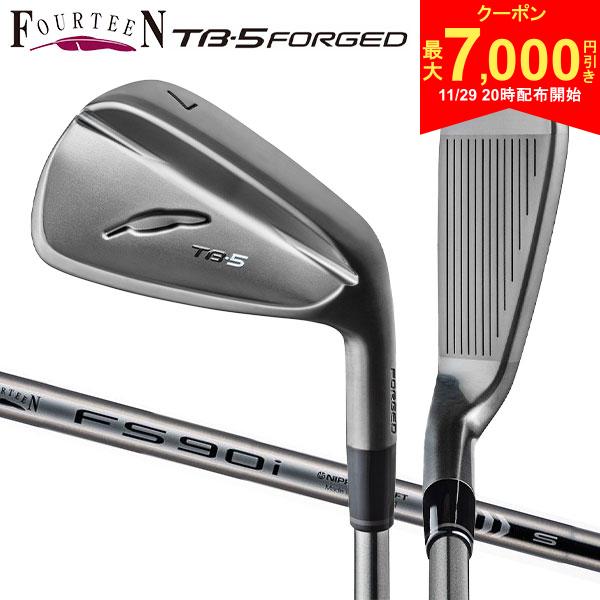 |フォージド |スチール(アベレージ)この商品の特徴即日出荷フレックスについて商品の本数と内容は商品名に表示していますので、ご確認下さいますよう、お願い申し上げます。グッとくる“絶対打感”進化を歩んだやさしさの軟鉄鍛造アイアン「NEW TB-5 FORGED」に、洗練された力強さを感じさせるダイヤモンドブラックサテン仕上げが登場。いつまでも美しく。ダイヤモンドブラックサテン仕上げ洗練された力強さを感じさせるダイヤモンドブラックサテン仕上げ。これまでのブラックメッキに比べて耐摩耗性に優れ、より長く美しい状態をキープします。シャフトカラーもヘッドに合わせ、ブラック仕上げを採用。クラブ全体としての存在感を引き立てます。PERFORMANCE変わってはいけない性能とは、TB-5 FORGEDの機能そのもの。フォーティーンの全てのプロダクトは必ずターゲットプレーヤーを据えて開発しています。「TB-5 FORGED」のターゲットプレーヤーは、長いゴルフキャリアを持っておりご自分のプレーやクラブにこだわりを持つ“熟練者”“ベテラン”のアマチュアゴルファー。新作においてもターゲットプレーヤーは変わらず、前作において“完璧”を誇った機能においては、あえて変わるべきではないとフォーティーンは考えます。ターゲットプレーヤーを明確に捉えた重心設計重心距離、重心深度、重心高さ、慣性モーメントに至るまで、つまりボールの上がりやすさ、つかまりやすさ、ミスヒットへの寛容性などNEW「TB-5 FORGED("25)」は前作をあえて精度よく維持することが絶対ポリシーなのです。より洗練されるべき性能とは打感をはじめとしたフィーリングそのもの。フォーティーンが考える軟鉄鍛造アイアンの価値観は、打感をメインとした卓越したフィーリング要素にあると考えます。単一素材鍛造構造がプレーヤーに伝える打感のピュアさは複合系構造では到底及ぶことはできません。打感の良さはナイスショット時に得られる爽快感だけでなく、ミスした時に明らかな打感の差(良悪)をフィードバックできる性能に真価があるのです。NEW「TB-5 FORGED」が歩んだ確実な進化は、打感をはじめとしたフィーリングそのもの。軟鉄鍛造が持つピュアな打感の良さはアマチュアゴルファーにとって上達を促します。良いショットを打った時は最高の打感を。それなりのショットにはそれなりの打感を。NEW「TB-5 FORGED」はアマチュアゴルファーにとって容赦なく最高のフィーリングを与えます。打感の進化=シアターブレードの進化単一素材の軟鉄鍛造アイアンにおいて打感をやわらかく仕上げるためには、打点エリアの肉厚化が開発テーマとなります。シアターブレード構造の大きなメリットは機能(重心性能)を変化させずに意図した箇所へと肉厚を自在に変化させていけること。トゥヒールへのシアター(曲面)部エリアを小さくさせ、打点に近いソールへの曲面部のボリュームアップに肉厚を費やしました。もう一つ、とくに「TB-5 FORGED」として大切なのはベテランプレーヤーの美学に応えるデザイン性であること。よりマッスルバックに近い感覚の“鉄感”や“厚み感”をデザインのテーマとして開発しています。シアターブレードからソールへの曲面部の境になるトゥヒール両サイドのグルーブは、デザイン性を利用した余剰重量の獲得を目的としていますが、鍛造製法としては難易度の高いデザインでもあります。“クラブは美しくなければならない”。フォーティーンが創業から守り続けるポリシーと機能を兼備するのが「TB-5 FORGED」です。あらゆるライに対応できるユニバーサルソールユニバーサルソールはやさしさのウェッジ「DJシリーズ」でアベレージゴルファーの使い勝手をテーマとして万能性を追求して編み出したのがルーツです。あらゆるヘッドの入射角に対応できるソールは前作「TB-5 FORGED("21)」でアイアン用として改良、実戦的やさしさに大いに貢献する大切な機能の一部です。「TB-5 FORGED("25)」ではさらにラウンド形状を緻密に洗練させてあらゆるライに対応できる抜けの良さを兼ね備えています。狼の皮を被った羊シアターブレードを改良する際の肉厚調整の過程ではトップブレードの厚みやネックの見え方など、さらにベテランプレーヤーが構えやすいヘッド形状へとブラッシュアップ。ヘッドサイズに変更はありませんが、ほどよくシャープさを感じつつストレート感をより意識できるセミグース形状へと進化を遂げました。最大級のやさしさに精悍な面構えの「TB-5FORGED("25)」はまさに“狼の皮を被った羊”です。▲FS90iBK スチールシャフト▲FOCHラバーM60R(TYPE4) BL無しスペック番手#6#7#8#9#PヘッドS20C(軟鉄鍛造)仕上げダイヤモンドブラックサテン仕上げロフト角(°)2630343842ライ角(°)61.56262.56363.5クラブ長さ(インチ)3837.53736.536クラブ重さ(g)S401407414421429R398404411418426バランスSD0.0D0.5D1RC9.5D0.0D0.5シャフト名FS-90i BK スチールシャフトシャフト重量(g)S93R89グリップ名FOCHラバーM60R(TYPE4) BL無し原産国日本発売日:2025年FOUR