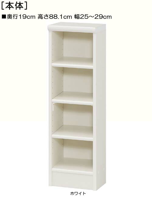 商品仕様 ■タイプ: 標準棚板(棚板厚さ1.7cm)タイプ ■棚板耐荷重: 9Kg ■外寸: 奥行19cm×高さ88.1cm×幅25〜29cm (幅は1cm単位でオーダーできます) ■外寸(幅): 25cm 26cm 27cm 28cm 29cm ■棚板枚数 移動棚板:2 移動固定棚板:1 ◆◇目次◇◆ 特長 ピッタリサイズ 幅1cm単位 サイズ豊富 カラー10色 扉も充実 転倒防止 固定バンド・金具 壁固定・横連結穴 天井突張棚 堅牢 棚板 独自棚受 背板補強 高品質 かぶせ天板 ソフトダンパー 安心品質・日本製 オプション 部材 追加棚板 扉ハンドル 取付方法 扉タイプ 天井突張棚 突張強化板 ソフトダンパー 加工 幅木よけ 棚移動15mm 配線用裏穴 タフ棚板穴 壁固定・横連結穴 ご案内 納期・送料 設置場所 作業スペース 組立価格・注文 他サイズ検索 説明目次 幅をご希望サイズに1cm単位でオーダーできます! 他サイズ検索(数値単位:cm) タイプ オープン 扉付き フラット扉 奥行(cm)  19  31  40  46 棚板 標準 厚板 幅 (cm) 〜24 〜29 〜44 〜59 〜70 〜80 〜90 高さ(cm) 211.1 178 149.9 135 117 88.1 80 70 60 49 オーダー本棚 奥行19cm×高さ88.1cm×幅25〜29cm 幅は1cm単位で指定 標準棚板(厚さ1.7cm) 奥行19cm 高さ88.1cm 幅25〜29cm お客様組立て 低ホルムアルデヒド ご注意 オプション加工選択時、価格は自動計算されません。メールにて合計金額をお知らせ致します。 16,720円 税込 送料込 カードOK eモノショップ ![]() | ||