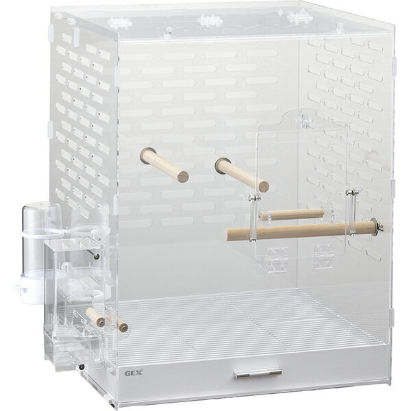 634. コトリウム460-2 全面クリアでかわいい姿がよく見えるアクリル製バードケージ。●下部には穴がないので、ゴミの飛び散りを軽減。●横向きに止まるのでいつでも視線が合う。●底トレイ+スノコでお掃除簡単。●底トレイを引き出してもスノコが残る脱走防止構造。●天面オープンでお手入れしやすい。●ロック付きで安心。エサ入れ、水入れ付き。●カバー付きコード穴つき。 【 製造国 】 中国 【 サイズ 】 約W46.5×D43.5×H58.5cm 【 メーカー名 】 ジェックス 【 JAN... 12,980円 税込 送料別 カードOK レビュー1件 わんにゃんStyle ![]() | ||
