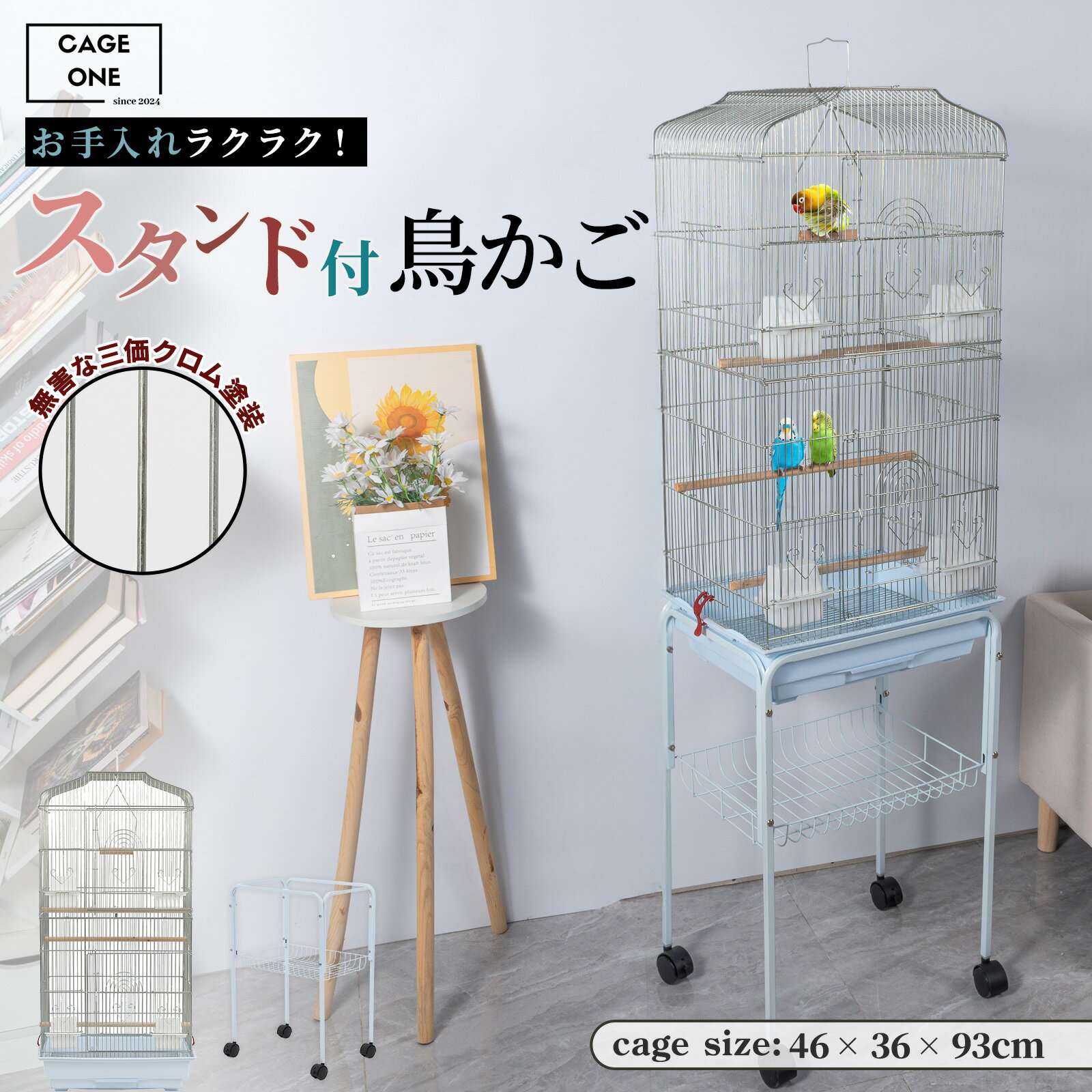 製 品 仕 様 サイズ(約): 鳥かご 高さ93×幅46×奥行き36cm 専用スタンドに乗せた場合 高さ153×幅46×奥行き36cm 重さ4.7kg 付属品: 鳥かご本体(スチール製) 専用スタンド(スチール製)BR> トレー(プラスチック) 止まり木:3本 プラスチック製のエサ(水)入れ:4個 ブランコ:1個 固定用ロック:2個 組み立て説明書 鳥かご専用スタンドをお付けいたします。(組み立て式) サイズ(47.5cm x 37cm x 高さ69.5cm) カラー: 鳥かご:シルバー スタンド:ホワイト 製 品 説 明 専用スタンド付き鳥かごとなります。 底網付きで、トレーは引き出し式のため掃除がカンタン。 カナリヤやセキセイインコなどの小鳥の多数飼育でも広々。オカメインコなどでもたくさん飼育できます。 安全性を考慮して、表面の塗装には亜鉛メッキ後の処理に鳥や動物に無害な三価クロムを使用しております。 2枚の大窓で鳥の出し入れがしやすく、隅々までお掃除可能! 12枚の小窓で小物の配置も自由自在。 持ち手付きでお手軽に移動できます。 組立説明書をお付けいたしますので簡単にご使用いただけます。 8,880円 税込 送料別 カードOK レビュー1件 さくらねこShop ![]() | ||