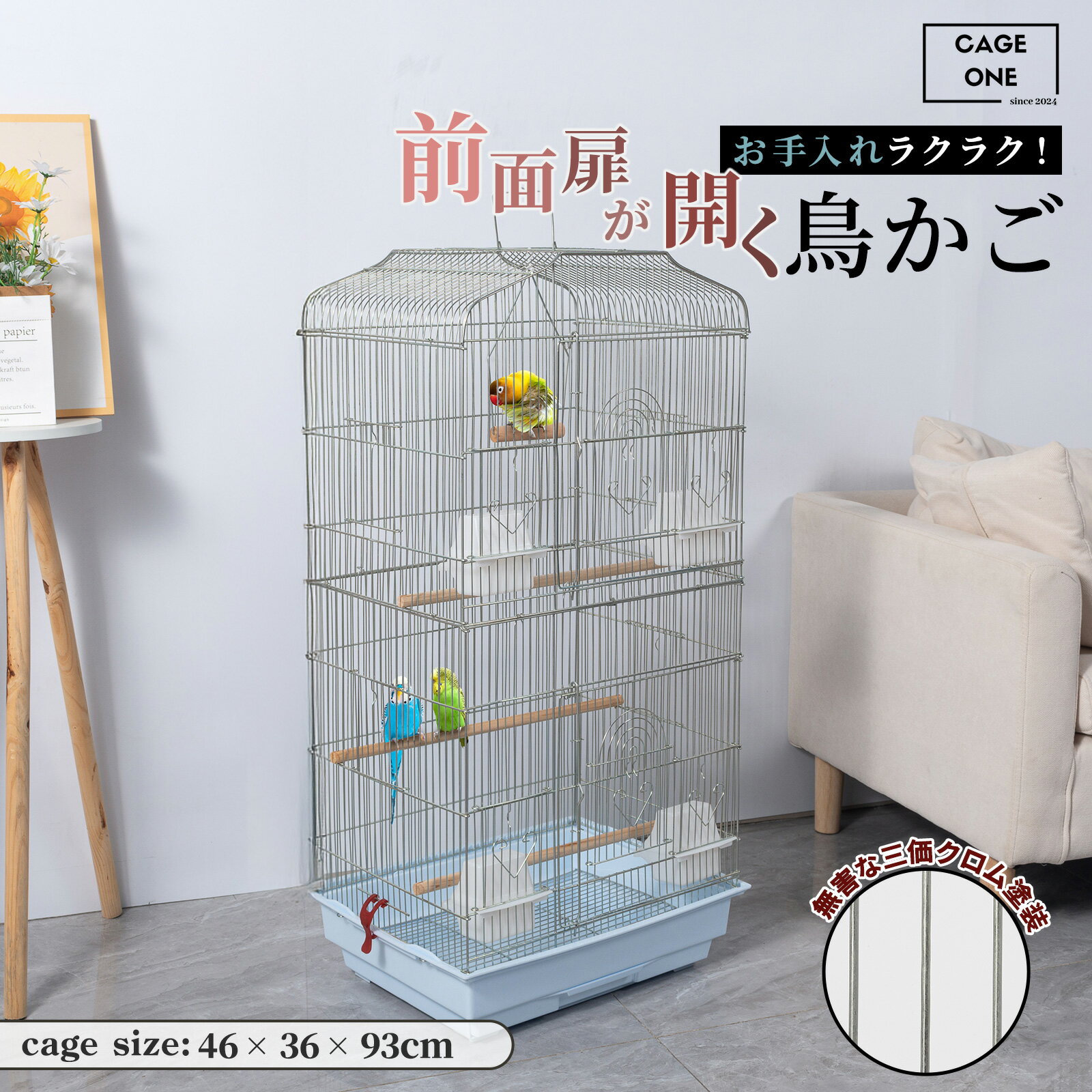 製 品 説 明 底網付きで、トレーは引き出し式のため掃除がカンタン。 カナリヤやセキセイインコなどの小鳥の多数飼育でも広々。オカメインコなどでもたくさん飼育できます。 安全性を考慮して、表面の塗装には亜鉛メッキ後の処理に鳥や動物に無害な三価クロムを使用しております。 4つのプラスチック製エサ入れと3本の木製止まり木、ブランコ、 2枚の大窓で鳥の出し入れがしやすく、隅々までお掃除可能! 12枚の小窓で小物の配置も自由自在。 持ち手付きでお手軽に移動できます。 組立説明書をお付けいたしますので簡単にご使用いただけます。 ●製品仕様 サイズ(約): 鳥かご 高さ93×幅46×奥行き36cm 重さ4.7kg 付属品: 鳥かご本体(スチール製) トレー(プラスチック) 止まり木:3本 プラスチック製のエサ(水)入れ:4個 ブランコ:1個 固定用ロック:2個 組み立て説明書 5,980円 税込 送料別 カードOK さくらねこShop ![]() | ||