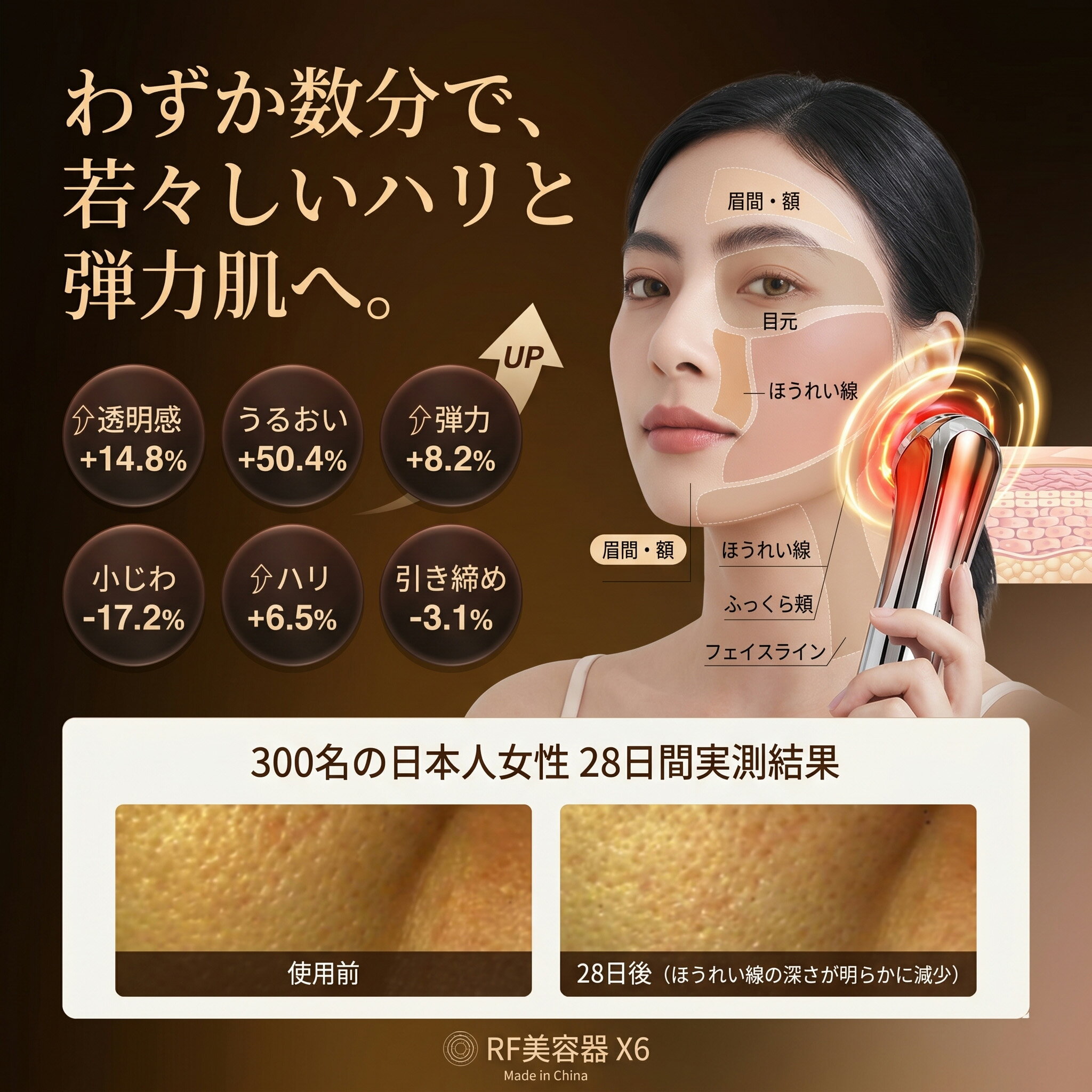 ルルド フェイスメイクエステ AX-KXL5260■ 商品説明全身しびれるほど、キレイ! 頭からつま先まであらゆるパーツを徹底ケア できるホームエステ機器です。 EMS・温感RF・LEDの3つの電気機能で全身ケア! 23本の電極針 独自の電極針形状により 1本1本がお肌へ沈み込み、今までにない程の密着感。 針の高さに変化をつけることで、全身にフィットする ようにカーブデザインの設計を実現しました。 頭、顔はもちろん、デコルテ、腕、おなかや太もも ふくらはぎなど、全身にお使いいただけます。 LED(フォトトリートメント) エステサロンでも 採用されている、光をあてることで肌をケアする技術。 様々な美容効果が期待できます。 ◎電極ヘッド 細部にもしっかり入り込む、小回りのきいた新技術電極ヘッド。 ほうれい線やデコルテのくぼみなど、ケアしにくい 箇所もピンポイントでアプローチできます。 ◎ランダムな電気の流れ 23本の電極針と電極ヘッドによるランダムな 電気の流れによって、広範囲・多層的に筋肉を刺激。 ◎温感RFの働き 温感RF(ラジオ波)で、お肌の内側からじんわり あたためより心地よく効果的なトリートメントを実現。 ◎安心な防水仕様 防水仕様(IPX7)で、濡れても安心。 ※商品を水没させないで下さい。 ◎充電式コードレス リチウムイオン充電池内蔵。 ◎MADE IN JAPAN信頼の日本製です。 品番 AX-KXL5260wh 仕様 ■素材: 本体:PC 電極部:ABS+クロムメッキ ■ACアダプター定格: 入力:AC100-240V 50/60Hz 0.2A 出力:DC5V 1A ■使用電池: リチウムイオン充電池 3.7V 1,100mAh ■消費電力: [標準] 1.3W [弱] 0.8W(ACアダプター使用時) ■充電回数: 約300回 ■充電所用時間: 約90分 ■電池持続時間: 約30分(RFのみ使用の場合) ■使用環境温湿度: 10〜35℃、10〜85%RH ■タイマー: 約3分自動オフ ■付属品: USBケーブル ■保証期間: 1年 ■生産国: 日本 サイズ・重量 ■サイズ: (約)W75×L210×H50mm ■重量: (約)170g ■USBケーブル: (約)1.5m 梱包サイズ・重量 ■化粧箱: (約)W160×L255×H55mm ■重量: (約)550g■ 注意事項※乳幼児の手の届かないところに保管してください。 効果・効能については、個人差がございます。 【ご注意】パッケージやデザインがリニューアルされたり、 内容量等が新しく変更になる場合がございますので予めご了承のうえご注文くださいませ。 ■ 広告文責株式会社グローライズ 連絡先: 050-3595-9136[美容雑貨総合][JAN: 4948731021931] 38,000円 税込 送料込 カードOK つや髪美肌研究SHOP ![]() | ||