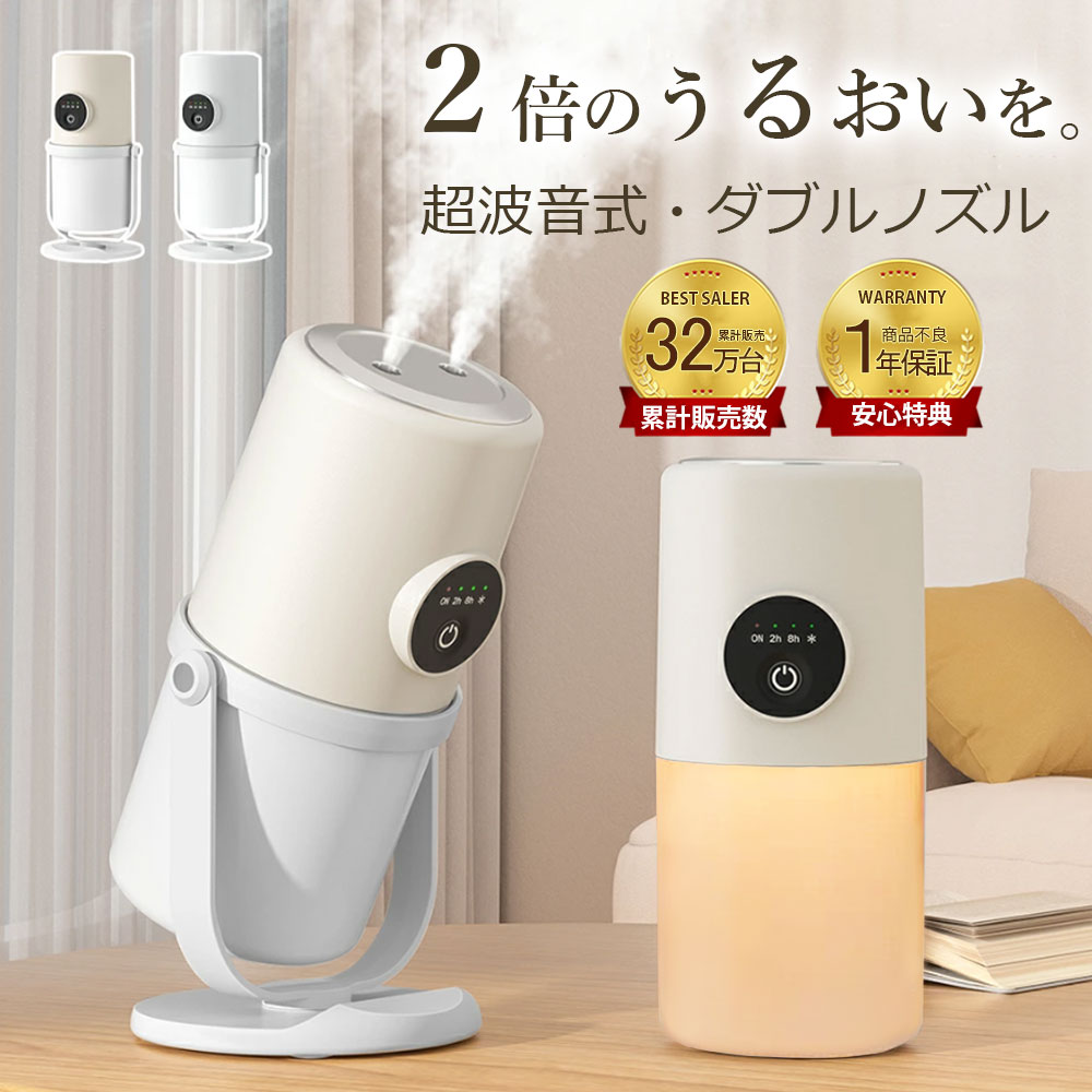 メーカー希望小売価格はメーカーカタログに基づいて掲載していますおすすめポイント POINT1. ダブルノズル卓上加湿器 弊社の卓上加湿器は革新的なデザインでダブル吹き出し口を採用し、2つの噴霧口からパワフルに加湿します。霧化効果は従来の卓上加湿器の約2倍。お肌が喜ぶ超微細ミストを実現しました。卓上加湿器は高周波振動によりナノレベルの微粒子化を行い、肌の奥まで浸透する水分子を生成します。 POINT2. LEDライト搭載・静音設計 電源ボタンを素早く2回押すと、LEDライトのオン/オフができます。温かみのある暖色の光は寝室に安心感をもたらします。卓上加湿器は約30dBで動作し、とても静か。寝室の湿度を保ちながら、快適な眠りを妨げることはありません。 POINT3. 2つの加湿モード・空焚き防止 2つの加湿モードから選べるため、部屋の湿度状況や使用シーンに応じて調整できます。連続モードは2時間の連続加湿、間欠モードは8時間の加湿が可能です。また、噴霧タンクの水が不足すると自動で運転を停止します。お出かけ中や就寝時でも、長時間安心して使用できる卓上加湿器です。(※使用時間はモードや使用状況によって異なります。) POINT4. ノズル角度調整可能 卓上加湿器のノズルは上下90度調整でき、さまざまな方向に噴霧を送ることができます。台座は360度回転可能で、部屋のレイアウトや使用シーンに合わせて最適な角度に設定できます。自分好みに角度を調整することで、心地よい湿度を自在に楽しみ、快適なうるおいライフを実現します。 POINT5. 便利なUSB充電式 このUSB充電式小型加湿器は、USB給電に対応しており、アダプターのほかにパソコンやモバイルバッテリーからも給電が可能で、利便性が高いです。使用場所を変えたいときや、お掃除の際も片手で簡単に移動できます。 POINT6. 車載加湿器にも対応 取り外し可能な台座を外せば、車載加湿器としても使用可能です。車内の空気を清浄し、静電気の発生を防ぎ、埃の飛散を抑えることで、鼻や喉の乾燥を防ぎます。出張や旅行に最適な車載加湿器です。 注意事項 ・水の入れるは最大水位線に超えないでお願いします。 ・水道水またはミネラルウォーターをご使用ください。(純水、蒸留水、ボトル入りの水は水質の問題で霧が出ません) ・水を注ぐ時、充電口に水をこぼさないようにご注意ください。 ・給水芯を装着する前に、給水芯の両端を5-10分間水に浸してから、給水芯スロットに装着してください。 ・水溶性アロマオイルしか入れることができません。 ・水溶性アロマオイルをご使用の際は、できるだけ製品内部のゴムパッキンが水に触れないようご注意ください。 ※画像ではできる限り商品に近いよう加工しましたが、照明やご覧のモニター環境によって実際の商品と多少色味が異なる場合があります。ご了承ください。 2,180円 税込 送料込 カードOK レビュー327件 カカショップ ![]() | ||