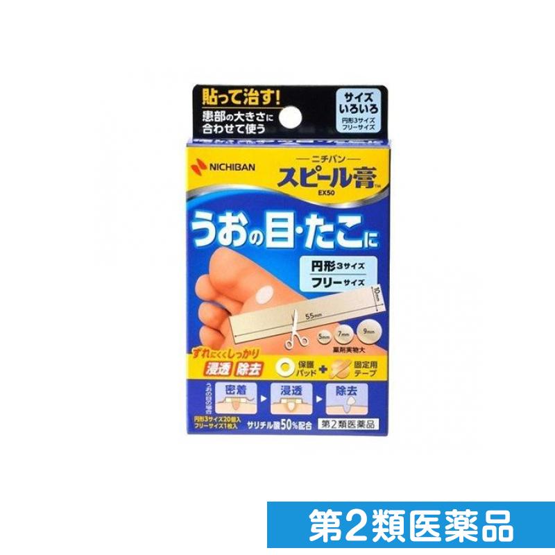 2020. 第2類医薬品 スピール膏 EX50 21枚 【商品名】 スピール膏 EX50 【効能・効果】 うおの目、たこ、いぼ 【保管上の注意】 (1)直射日光をさけ、なるべく湿気の少ない涼しい所に保管してください。 (2)小児の手のとどかない所に保管してください。 (3)誤用をさけ、品質を保持するため、他の容器に入れかえないでください。 (4)開封後、残った薬剤(スピール膏TMEX50)及び固定用テープ類は、品質保持のため同じ袋には入れず、それぞれもとの袋に戻し、もとの箱に入れて保管してください。 【消... 779円 税込 送料別 カードOK くらしのカタログ ![]() | ||