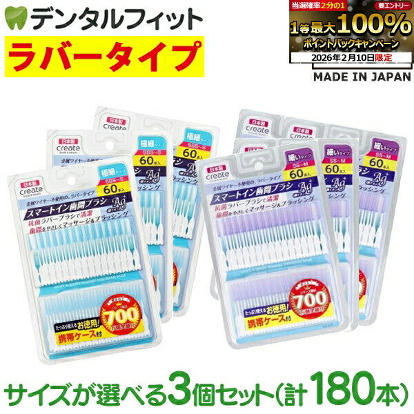 スマートイン歯間ブラシAg+ 抗菌ラバーブラシで清潔 歯間をやさしくマッサージ&ブラッシング たっぷり使えるお徳用! 携帯ケース付き 【特徴】 ワイヤー未使用のラバーブラシが、歯間の食べかす・歯垢を清掃しながら、歯茎をやさしくマッサージします。 先端円錐設計なので、歯間の狭い方でも、スムーズに挿入できます。 保管に便利なケース付きです。 【使用方法】 ●鏡を見ながら歯肉を傷つけない様、まっすぐ、ゆっくりと歯間に挿入してください。 ●細かく前後に動かし、食べかすや歯垢を清掃してください。 ●無理に曲げてご使用にならない様、ご注意ください。 ●ブラシを回転させて使用しないでください。 ●ご使用後は水洗いし、よく乾燥させて保管してください。 ●ブラシ部や軸が曲がったら、新しいものと交換してください。 【使用上の注意】 ●無理に力をかけてのご使用は、折れたり、ブラシの破損の原因となる為、まっすぐに力をかけずにご使用ください。 ●挿入しにくい場合、無理に差し込んだり、回転させないでください。歯や歯茎を傷める原因になります。 ●お子様が一人でご使用になることはお避け下さい。 ●乳幼児の手の届くとおころには置かないでください。 ●歯間清掃以外の用途で、ご使用にならないでください。 ●万が一、飲み込まれた場合、医師にご相談ください。 柄の材質:ポリプロピレン ブラシの材質:エラストマー ケースの材質:ポリプロピレン 【ご注意(免責)事項】当店では、サイト上に最新の商品情報を掲載するよう努めておりますが、メーカーの都合等により、商品規格や仕様(容量・成分・パッケージ・原産国など)が予告なく変更される場合がございます。このため、実際にお届けする商品と商品ページ上の情報表記が異なる場合がございますので、ご使用前には必ずお届けした商品の商品ラベルや注意書きをご確認ください。また、商品情報についてページ表記以外の詳細が必要な場合は、メーカー等にお問合せください。 1,360円 税込 送料別 カードOK レビュー4件 歯科医院専売品のデンタルフィット ![]() | ||