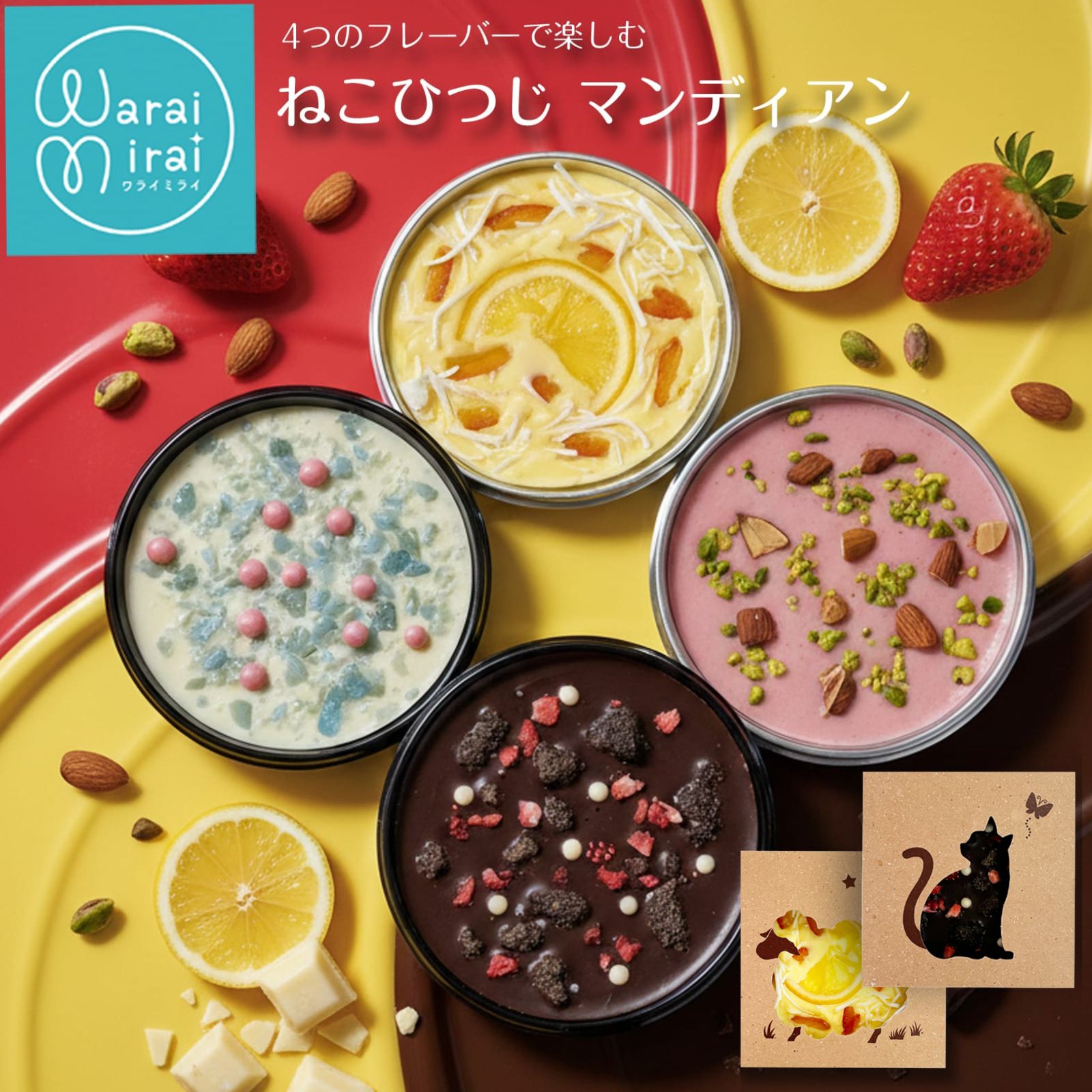 ギフト会場はこちら 商品説明 ひとつひとつ個包装された、配りやすいチョコレートギフトです。 くちどけの良いチョコレートに、ナッツやフルーツをあしらい、4種類の味わいをご用意しました。。 内容量 2枚 賞味期限 常温で約2週間 配送温度帯 常温冷蔵や冷凍商品同梱の場合、変更させていただく場合がございます ギフト包装 熨斗不可、ラッピング可 納品書 当店では環境配慮のため、納品書など金額がわかるものは同封いたしません。ご利用の方は恐れ入りますが、購入履歴よりプリントアウトをお願いいたします。 利用シーン 季節ギフト( バレンタインデー ホワイトデー 母の日 父の日 子供の日 誕生日 ハロウィン クリスマス 敬老の日 誕生日 ひな祭り 七五三 卒業式 入学式 敬老の日 )ご挨拶ギフト( お歳暮 お年賀 お中元 暑中見舞い 残暑見舞い 寒中見舞い 結婚 出産 入学 内祝い お祝い お見舞い 還暦祝い 米寿 喜寿 手土産 菓子折り 引出物 )公式アカウントお友達登録クーポンはこちらをクリック わらいみらいの スイーツ ケーキ のご紹介 プチギフト お配り用 チョコレート マンディアン ひとつひとつ個包装された、配りやすいチョコレートギフトです。 くちどけの良いチョコレートに、ナッツやフルーツをかわいくトッピング。 いちご レモン ホワイトチョコ ビターチョコレート の4種類をご用意。 箱は猫やひつじモチーフのデザインで、手に取った瞬間にかわいいと笑顔に。 バレンタインやホワイトデーはもちろん、退職や卒業のご挨拶、ちょっとしたお礼やプチギフトにもおすすめです。 見た目の可愛さだけでなく、味わいにもこだわり、最後まで飽きずに楽しめるのが魅力。 気軽に渡せて、きちんと気持ちが伝わるので、「何を選べばいいか迷ったとき」に頼れるチョコレートです。 ▼▼関連商品の スイーツはこちら▼▼↓ 4種類 8個入り 常温でも置けるチョコタルト タルトスモア 塩クッキー チーズクッキー おつまみ ギフト缶 わらいみらいの人気 フルーツ カタラーナ ギフトセット テレビで紹介 きれいな ハーバリウム風 フラワーゼリー 選べる マカロン 太っちょマカロン トゥンカロン 味も柄もすべて違う ミニロールケーキ タワーにも 1,200円 税込 送料別 カードOK わらいみらい ありがとうの贈り物 ![]() | ||