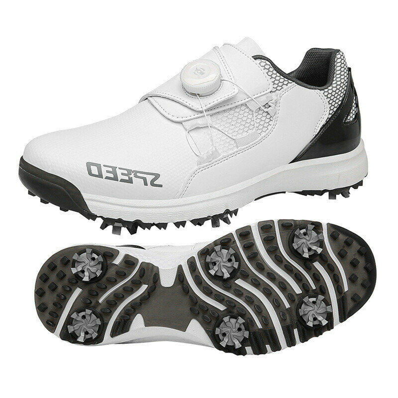 2002. 【楽天スーパーセール】ゴルフシューズ メンズ レディース ダイヤル式 ソフトスパイク スパイク付き スパイク鋲 4E 幅広 フィット感 スニーカー シューズ 軽量 防水 運動 父の日 ギフト 商品名ゴルフシューズ素材PU、合成ゴム、その他ご注意点商品写真はできる限り実物の色に近づけるよう加工しておりますが、お客様のお使いのモニター設定、お部屋の照明等により実際の商品と色味が異なる場合がございます。サイズ詳細等の測り方はスタッフ間で統一、徹底はしておりますが、若干の誤差がある場合がございます。プリント生地の商品については、生地の裁断?縫製方法により写真と同様の柄が出ない場合がございます。生地の特性上、やや匂いが強く感じられ... 6,821円 税込 送料込 カードOK アーバンショップ ![]() | ||
