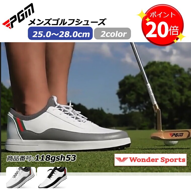 歩きやすい スニーカータイプのデザインで、歩きやすい 疲れにくい 軽量素材を使用し、長時間のプレーでも疲れにくい 防水加工 マイクロファイバーレザーや二重層防水構造で雨天時でも安心 通気性 通気性と汗吸収性に優れた柔らかい生地で蒸れにくく快適 スパイクレス 様々なコースで使用可能 ■商品説明 内容 ゴルフシューズ カラー ホワイト×グレー、ホワイト×ブラック マテリアル PU、EVA、ゴム等 サイズ 39(25.0cm)、40(25.5cm)、41(26.0cm)、42(26.5cm)、43(27.0cm)、44(27.5cm)、45(28.0cm) ワイズ E相当 重さ 約353g(42サイズ片足) サンプル品の実重量となります。多少の誤差が生じる場合がございます。 サイズ選びについて 幅広・甲高の方はワンサイズ大きめをお勧め致します。 製造 Made in China 海外製品について 当店にて一点一点検品を行っておりますが、下記のような商品も含まれております。 ご了承の上、お買い求めください。 ・色やデザイン等が若干異なる ・小さなシミ汚れがある ・外箱に損傷がある など 発送について 最短即日発送可能 その他 ※パソコンモニターの発色の具合によって実際のものと 若干色が異なる場合がございますので、ご了承ください。 ※ゴルフシューズは2~3足ほどを履きまわしていただくと長持ちします。洋服と合わせる楽しみもできます。まとめてご注文されるのはいかがでしょうか。 また、丁寧に箱詰めしておりますので、大切な方へのプレゼントにもおすすめです。 【注目キーワード】 クラブ ゴルフボール グローブ シューズ ゴルフ用の靴 キャディバッグ ティー パターカバー バラマキ用品 ゴルフ大会 プラクティスボール グリップ ヘッドカバー パット フェアウェイ バンカー パー バーディー イーグル ホールインワン ショット ストローク グリーン ティーグラウンド パター アプローチ ウェッジ サンバイザー ピッチングウェッジ ドライビングレンジ ボールマーカー プッシュカート ドライバーヘッド パターヘッド ハンドウォーマー ラフ グリーンリーダー ラウンドスコア 18ホール ハンディキャップ プレイヤー ショット フェアウェイ ハイブリッド ウェッジ スリーブ バンカー オープン マスターズ USオープン 全英オープン プレーオフ バーディ パー ボギー ダブルボギー ティーショット パット フェアウェイ ラフ バンカー グリーン パーオン バーディー イーグル アルバトロス ハザード アイアン ウッド パッティング グリーン スコアカード ドローボール フェードボール スライス フック パワーヒッター ショートゲーム ロングゲーム ハーフラウンド フルラウンド マッチプレー ストロークプレー シングルス フォーサム スクランブル ゴルフウェア セットアップ メンズ 上下セット ジャージ ゴルフパンツ ジップアップ パーカー スタンドジャケット イージーパンツ ブルゾンストレッチ スポーツホワイト ブラック レッド ブルー 39(25.0cm) 40(25.5cm) 41(26.0cm) 42(26.5cm) 43(27.0cm) 44(27.5cm) 45(28.0cm) PGM レディース 両手用 全天候型 通気性 柔らかい 滑り止め 17 18 19 20 21 ピンク ネイビー 多機能 オシャレ かっこいい かわいい 新作 初心者向け 使いやすい 簡単 流行 手軽 軽量 柔軟性 グリップ力 滑りにくい 人気 父の日 母の日 敬老の日 ギフト プレゼント 10代 20代 30代 40代 50代 60代 70代 春 夏 秋 冬〜PGMのゴルフシューズの特徴と性能〜 ■特徴1:安定性とトラクション PGMのゴルフシューズは、シューズ全体がしっかりとした構造になっており、 足の動きを制限することなく、スイング中に安定した姿勢を維持できるように設計されています。 また、強力なグリップ力を発揮できるアウトソールになっております。 ■特徴2:快適さ ゴルフシューズは、ラウンド中、長時間着用するため、快適さが重要です。 PGMのゴルフシューズは、足の形状に合わせて作られており、 クッション性のあるインソールが付いております。 また、通気性が良く、蒸れにくい素材を使用しています。 ■特徴3:軽さとフレキシビリティ PGMのゴルフシューズは、長距離を歩いても疲れにくくする為、軽さを徹底的に追求しております。 また、足の自然な動きを制限しないために、フレキシビリティにも注力しております。 ■特徴4:デザイン ゴルフシューズはデザインも重要な要素です。 PGMのゴルフシューズはプロゴルファーにも愛用される個性的なデザインになっております。 ■特徴5:耐久性 PGMは最先端の生産技術の開発にも注力しております。 耐久性に優れ、ラウンドを繰り返しても長持ちするように作られております。 〜PGMのゴルフシューズが愛され続ける理由がある〜 ■理由1:二重層防水 外側は、柔らかい耐水性マイクロファイバーレザーで作られています。 30万回の防水テストに合格しております。 ■理由2:快適な履き心地 裏地は、通気性と汗吸収性に優れた柔らかい生地で作られています。 インソールは柔らかい弾性EVA材料で作られ、クッション性に優れています。 ■理由3:強いグリップ 軽量シューズでありながら