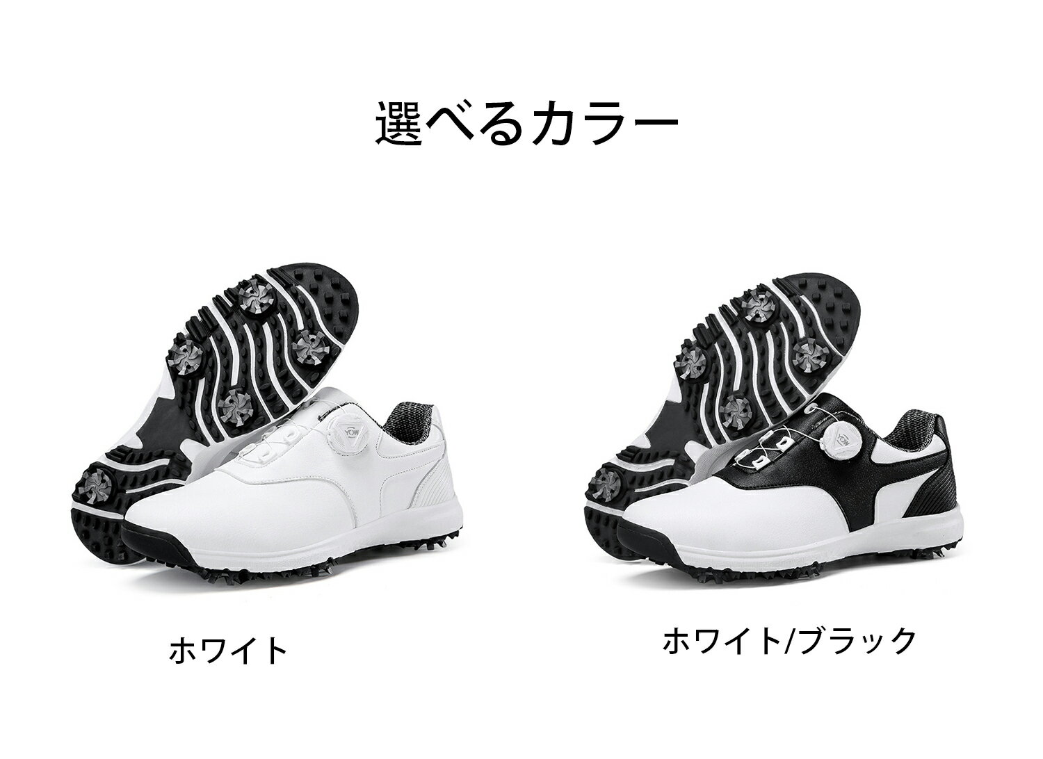 ゴルフシューズ ゴルフ ウォーキングシューズ プロゴルフスニーカー レザー 滑り止め 防水 練習靴 ダイヤル式 男女兼用 23.0cm-28.0cm ゴルフシューズ 歩きやすい 疲れにくい 快適 履き心地がいい 【快適な素材】アッパーは耐久性に優れた超繊皮革を採用して、重量が軽く、耐摩耗性が強く、柔軟な足の感触をもたらし、より快適なフィット感のために足をしっかりと包みます。かかと部分は自然な動きをサポートするデザインで足のサポート、固定、保護により、運動中により積極的に動き始めることができます。【防水靴の面】良いゴルフシューズには防水機能が備わっている必要があり、湿地や雨の多い天気の下でもサラサラと快適さを保つことができます。強度と靭性が高く、防水性と防汚性があり、耐久性があり、お手入れも簡単です。この商品は、快適性と機能性を両立した、優れたゴルフシューズです。【滑りにくいラバー靴底】ゴルフ場の芝生と地面にはさまざまな状況があるかもしれません。摩擦性の高いラバー素材が防滑性を増しているので、滑りにくいデザインの上に、着地時の衝撃を分散させて足の負担を軽減、快適な歩行が可能です濡れた岩場や滑りやすい路面でも高いグリップ力を発揮し、気楽にアウトドアを楽しんでいただく事ができます。【緩衝性能】バレーボール運動中のジャンプと衝撃は足に一定の圧力があり、良好な耐震と緩衝性能を備えたバレーボールシューズを選択することで,足への衝撃を減少させ、より良い保護と快適感を提供することができる。この靴の甲と靴底は屋外の場所にもよく応用できますが、靴自体は防水ではありません。【絶妙なデザイン】 品質だけでなく、見た目も重視し、さまざまなスタイルのジャージに合わせられるようにしています。靴の構造と機能は、スイングや歩行時の快適さと自信を確保するための良好なサポート、安定性、柔軟性を提供することを目的としています。 5 7,980円 税込 送料込 カードOK Skywinner楽天市場店 ![]() | ||