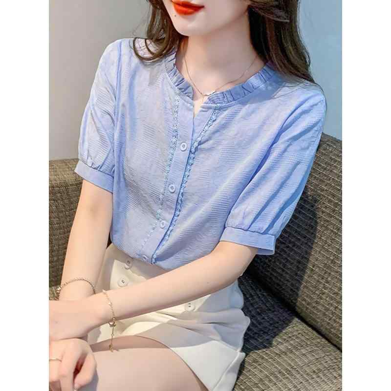 1596. 【予約販売5~12営業日での発送】 シャツ レディース 半袖 薄手 雪紡 ポリエステル デザイン 波点 トップス ブラウス 立襟 ドット柄 オフィスカジュアル 通勤 きれいめ かわいい 杏色 4,791円 税込 送料込 カードOK シャドーテール ![]() | ||