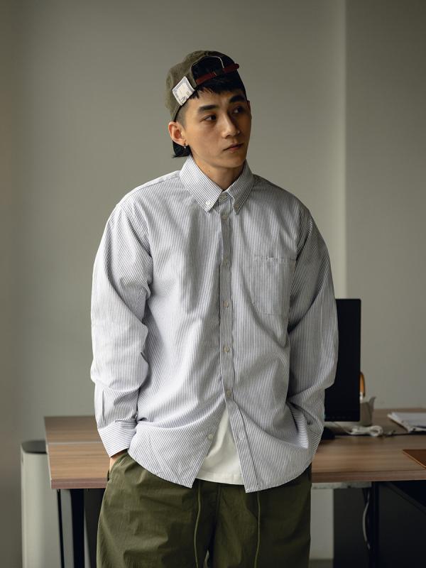 2136. 【予約販売5~12営業日での発送】 シャツ 男性用 長袖 オックスフォード ボタンダウン ウォッシュ加工 古着風 ドロップショルダー コットン ストライプ柄 ネイビー 紺 グレー ブラック 春秋 ... 8,129円 税込 送料込 カードOK シャドーテール ![]() | ||