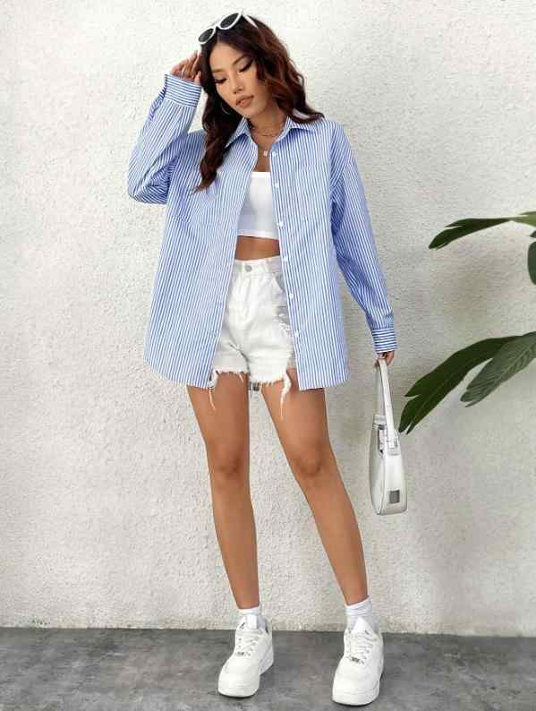 2487. 【予約販売5~12営業日での発送】 シャツ レディース ストライプ柄 コットン 長袖 ブラウス チュニック丈 ゆったり 襟付き トップス 春夏 秋冬 韓国ファッション きれいめ カジュアル オフィス 6,643円 税込 送料込 カードOK シャドーテール ![]() | ||