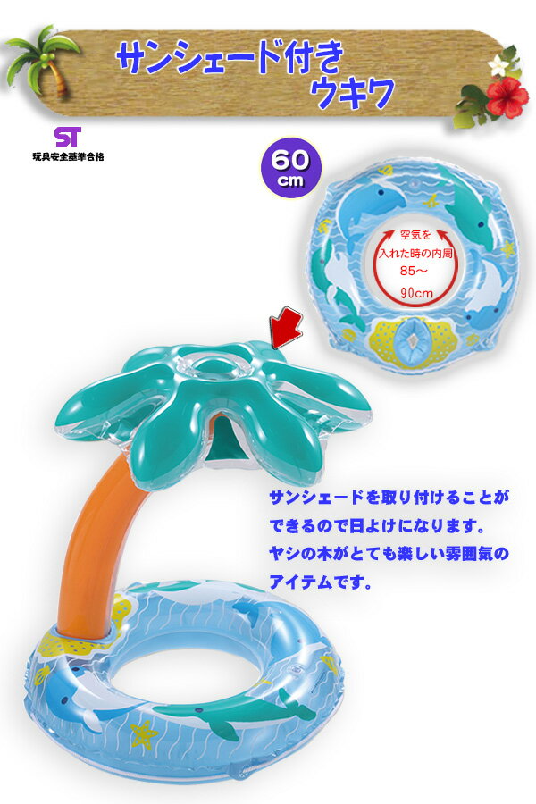 商品説明 特長 ●取り外し可能なサンシェード(日よけ)付 ●ヤシの木がとても楽しい雰囲気のアイテムです。 ●ヒオキ製品だから安心、安全 ●玩具安全基準合格(STマーク)取得製品 ●子供にやさしい素材 ノンフタルマーク入 (日本空気ビニール製品工業組合統一マーク) ※ノンフタルマークは玩具安全基準のフタル酸エステル含有基準(DEHP・DINP) に適合した製品に表示しています。 品番 HL127WN8360 品名 サンシェードウキワ60(イルカ) 販売価格 1780円(税込) メーカー希望小売価格 3520円(税別:3200円) サイズ・仕様 サイズ: 直径約60cm ※膨らましていない状態のサイズ 中心の穴の内周:約85~90cm ※空気を入れた時の内周 パッケージサイズ: 約23cm x 約24cm 対象年齢: 3歳以上 備考 ・モニターの発色の具合により、実際の物と色が異なる場合がございますので、あらかじめご了承ください。 ・小さなお子様を1人で遊ばせないようにしてください。必ず保護者の目の届く場所で遊ばせてください。 ・商品を開封された場合、お客様のご都合によるご返品はできませんのでご了承願います。画期的!取り外し可能な 日よけ(サンシェード)付ウキワ! ヤシの木がとても楽しい雰囲気のアイテムです。 ヒオキ製品だから安心、安全! ●画期的!取り外し可能な日よけ(サンシェード)付ウキワ ●ヤシの木がとても楽しい雰囲気のアイテムです。 ●ヒオキ製品だから安心、安全 ●玩具安全基準合格(STマーク)取得製品 ●子供にやさしい素材ノンフタルマーク入(日本空気ビニール製品工業組合統一マーク) ※ノンフタルマークは玩具安全基準のフタル酸エステル含有基準(DEHP・DINP) に適合した製品に表示しています。 ※モニターの発色の具合により、実際の物と色が異なる場合がございますので、あらかじめご了承ください。 ※小さなお子様を1人で遊ばせないようにしてください。必ず保護者の目の届く場所で遊ばせてください。 サイズ: 直径約60cm ※膨らましていない状態のサイズ 横幅約13cm x 奥行約13.5cm x 高さ約18cm ※膨らました状態のサイズ 中心の穴の内周:約85~90cm ※空気を入れた時の内周 パッケージサイズ: 約24cm x 約23cm 対象年齢: 3歳以上 1,780円 税込 送料別 カードOK レビュー1件 ホリデーライン ![]() | ||