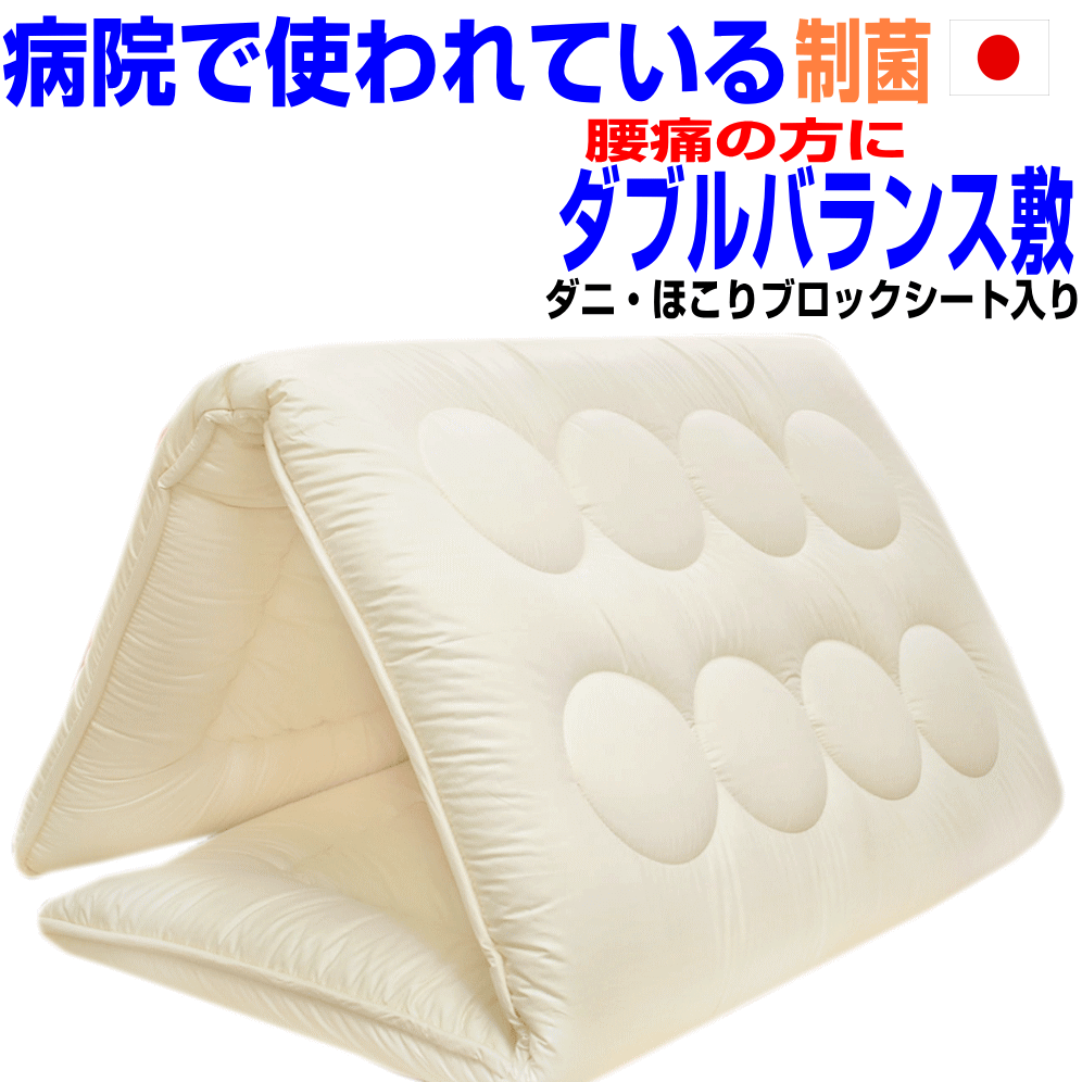 |  | 腰にやさしい高反発・三層構造の日本製敷布団。 ウレタン入りのしっかり設計で体圧を分散し、底付き感を軽減します。 アレルギー対策・防ダニ・抗菌・防臭・吸汗で清潔を保ちやすく、軽量で扱いやすい構造です。 綿100%の高密度生地使用で、肌ざわりも快適。 マットレス不要で、来客用にもおすすめの国産ふとんです。 点で支える独自の凹凸構造(プロファイルウレタン)+高性能わた 今、人気の体圧分散敷布団をさらに高性能わたに バージョンUP!さらに低価格でご奉仕。 凹凸構造の採用により、凸部分でからだを支え体圧を分散し、 凹部分で空気の対流がおきムレを防ぐ効果が得られます。 しかも軽量の敷布団です。 タマゴはタテにすると、上下からかなり力を加えても割れません。 上からの力に対して、立体的に拡散してしまうからです。 面でなく点で支えるために、指圧効果があり、さらに体との接触部分が少なくなり、重さを分散して、 床面からの圧迫感を減少します。 皮膚に近い毛細血管の血行や体液の流れなどの循環系を圧迫することが少なく、負担も軽くなります。 血行がスムーズで、心地よく安眠できるのです。 〜〜〜〜〜〜〜〜〜〜〜〜〜〜〜〜〜〜〜〜〜〜〜〜〜〜〜〜〜〜〜〜〜〜〜〜 『高反発のようなプロファイルウレタン』は、全容積の半分以上が空気泡でできています。 このため保温性・断熱性があります。 ですから床面からの寒さをしっかりガードし、暖かさを保ちます。 〜〜〜〜〜〜〜〜〜〜〜〜〜〜〜〜〜〜〜〜〜〜〜〜〜〜〜〜〜〜〜〜〜〜〜〜 健康な体を支える敷き布団。。。それは! 【ポイントはS字ライン!!】 自然に立ったとき、背骨はゆるやかなS字ラインを 描いています。そのまま横になった状態が理想的!! 柔らかすぎる敷布団は背骨がW字型の不自由な姿勢になり 硬すぎる敷布団は体の重さがかかる部分の血流が妨げられます 不自然な寝姿勢でいると骨盤がゆがんで神経や筋肉を 圧迫して血液や体液の循環を妨げるなど、体や気分の 不調にもつながります! 他の敷き布団よりへたりがかなり、改善しました。 プロファイルウレタンの体圧分散効果を高めるため、 今、楽天で一番人気のドクター三層構造敷布団 を改良した プロファイル体圧分散敷布団に仕上げました。 さらに寝心地がUPしました。 掛布団 組布団 ダブル アレルギーの方にも安心して使える低価格良品 体圧分散制菌敷布団 さらに高性能制菌! 一般の抗菌布団とちょっと違う制菌敷布団♪ この【体圧分散制菌敷布団】は、従来の抗菌加工の布団より 『病院採用高性能制菌を使用』 (無機系銀化合物配合) 当社寝具技能士によって新機能素材で家庭用にお仕立てしました。 ほこりが出にくい中綿・清潔&安心 『体圧分散敷布団』 新企画の当店オリジナルの制菌敷き布団です (^^)v もちろん、日本製です 極上手仕上げ!気持ちいい〜 高性能抗菌  ◆ レビューの書き込み方 ◆ ★ ご購入頂いた商品の「レビュー」は →こちらをクリック←から投稿できます^^ ☆ 「書き方がまだイマイチ分からないよ」というお客様は 『レビューの書き方、詳しくはこちらをクリック』をご覧下さいませ♪ さらに高性能をお求めの方はこちらをクリックして下さい。 即納・指定日配送・時間帯指定・ポッキリ送料込・税込です。 新婚新生活用・来客用・介護用家族用ファミリーサイズ・セミダブルロングサイズ・2段ベッド用・二段ベッド・フローリング用・ダブルベッド用 抗菌 消臭 防カビ 防ダニ加工 ダニ防止国産135×210 135×200 140×200オーダーメイドの敷き布団 敷布団セットもあります 布団丸洗いOK・ ウォッシャブルクリーニング洗える・極厚・極太・折れる・ 軽い固め(軽量硬め)のマットレス不要のへたりにくいオールシーズン対応合成 繊維マチ付き5層4層(四層 )新作固綿と無添加 綿100%生地使用 、ほこり ホコリ 埃 アレルゲンが少なくアレルギー方におすすめの高密度カバー、 熟睡 不眠症 腰痛ヘルニア 肩こり骨盤 矯正のための寝姿勢を重視しています。 ギフトにかわいい北欧柄のあったかシーツあたたかい敷布団カバー寝具セットふとんセットフトン蒲団ダブル4点セット8点セット等販売中! 楽天ランキング入賞品多数、特典安心高級品 、訳ありわけ有わけ特価割引アリアウトレットを数量限定ネット限定バーゲンSALE、 お試し福袋を超特価在庫処分! 激安50%OFF期間限定半額セール!開催中 大人気最高評価 No.1 ランキング品等取り揃えています。  <取り扱い商品>v lap アレルバスター ミクロガード トゥルースリーパー ミクロガード ダニゼロック高反発 低反発 <取り扱い繊維>アクフィットECO ウォシャブルロン ケパック フィルハーモニィ 東洋紡ブレスエアー 東レマッシュロン マイティートップ ウール 羊毛 インビスタアクア ホロフィル クォロフィル <取り扱いメーカー品>京都西川 西川産業 東京西川 西川リビング ブリヂストン  帝人テイジン アキレス 【RCP】【HLS_DU】 新生活ウイルス対策sk布ダ5b和室 フローリング にも最