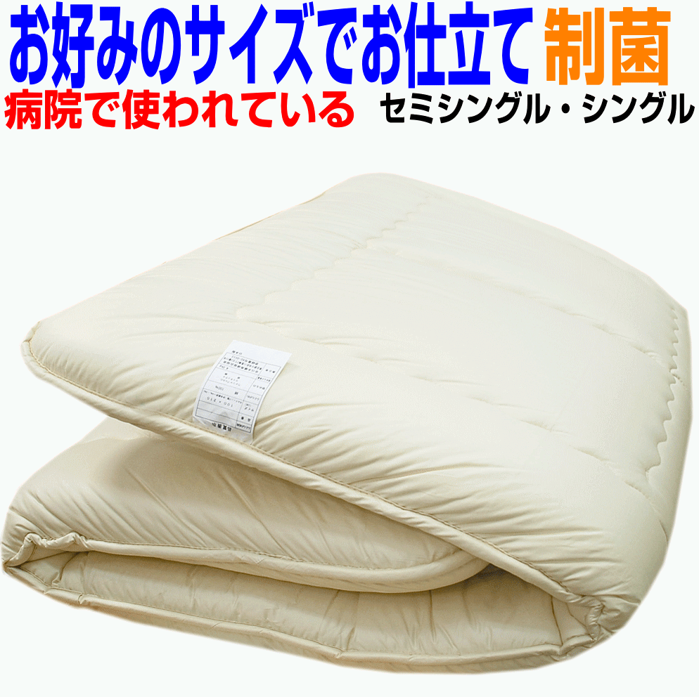 |  | 同値でお布団サイズを変更カットできます。 お仕立てに3週間〜1か月程度お時間かかります。 ご注文時に備考欄にサイズをご記入ください。 ※ご記入サイズは、【実寸98×205cm以下】でお願いします。 (上記サイズ以上は別途料金) ※お仕立ての場合、日時指定はできませんので予めご了承下さい 一般の抗菌布団とちょっと違うワンランク上の制菌敷布団♪ ドクターES多層式敷布団は、 従来の抗菌加工の布団より さらに『病院採用高性能制菌繊維を使用』 高性能制菌機能となりました。 病院など医療機関などで広く使われいる高性能制菌繊維で 家庭で使えるように寝具技能士がでお仕立て企画しました。 商品についての詳細はこちらをクリック 制菌とは、 抗菌は表面上の細菌の増殖を抑制すること  制菌は微生物の活動を停止又は低下させ、 抗菌より、制菌は数多く菌の増殖を抑えることができます。 抗菌は抑制しますが、菌は少しずつ増えていきます。 制菌は活動を低下させるので、菌は減っていきます。 よってレベルを比較すると制菌の方が格が上となります。 【制菌ドクターEs 布団の特 長】 ●抗菌からワンランク上のバージョンUPした    病院で使われている制菌を使用 ●病院で使われている布団を  当社寝具技能士が家庭用に改善、  菌にも強くより安全・安心なお布団です。  科学が生んだ清潔さを是非実感してください。 ●『制菌ドクターEs』製造工程は一般寝具とは違い、  病院用寝具の製造工場で生産。  わたホコリが少なく、軽くて、安全・衛生的な特徴を備えています。  高密度生地使用でさらにダニ防止(防ダニ)効果UP!  綿100%生地を使用しているため、  アトピー、アレルギーの方にもお勧めです。 ●ダニ・ほこりをブロックする不織布シートを布団内部に装着し、  清潔で快適な眠りをお届けします。   ●布団のにおいが、気になる方  細菌やカビ類が原因。 細菌の増殖を防ぎ、悪臭の発生を防止、  清潔で快適な眠りをお届けします。 ●手仕上げでマットレスなしでも、柔らかすぎず硬すぎずちょうどよい寝心地 ●もちろん、日本製 市販のカバーでご使用可、ベッドでも使えます。 ●他に手に入らない寝具です。是非こちらでお求めください。 高性能制菌 極上手仕上げ!気持ちいい〜 ベットにも使えます。 ヌードタイプシングル布団(白)となっております。 マットレスは不要です。 へたりを少なくするため、ポリエステル綿で圧縮、 硬質の多層式敷き布団に仕上げています。 同値でお布団サイズを変更カットできます。 お仕立てに3週間〜1か月程度お時間かかります。 ご注文時に備考欄にサイズをご記入ください。 ※ご記入サイズは、【実寸98×205cm以下】でお願いします。 (上記サイズ以上は別途料金) ※お仕立ての場合、日時指定はできませんので予めご了承下さい シングルロング(100X210)はこちら ジュニア(90X190・80x180)はこちら 只今、ポイントUP!こちらをクリック さらに病院採用高性能制菌敷き布団お求めは!こちらをクリック 即納・指定日配送・時間帯指定・ポッキリ送料込・税込です。 新婚新生活用・来客用・介護用家族用ファミリーサイズ・シングルロングサイズ・子供用・2段ベッド用・二段ベッド・フローリング用・シングルベッド用 抗菌 消臭 防カビ 防ダニ加工 ダニ防止国産 敷布団セットもあります 布団丸洗いOK・ ウォッシャブルクリーニング洗える・極厚・極太・折れる・ 軽い固め(軽量硬め)のマットレス不要のへたりにくいオールシーズン対応合成 繊維マチ付き4層(四層 )新作固綿と無添加 綿100%生地使用 、ほこり ホコリ 埃 アレルゲンが少なくアレルギー方におすすめの高密度カバー、 熟睡 不眠症 腰痛ヘルニア 肩こり骨盤 矯正のための寝姿勢を重視しています。 ギフトにかわいい北欧柄のあったかシーツ敷布団カバー寝具セットふとんセットフトン蒲団シングル6点セット9点3点セット7点等販売中! 楽天ランキング入賞品多数、特典安心高級品 、訳ありわけ有わけ特価割引アリアウトレットを数量限定ネット限定バーゲンSALE、 お試し福袋を超特価在庫処分! 激安50%OFF期間限定半額セール!開催中 大人気最高評価 No.1 ランキング品等取り揃えています。  <取り扱い商品>v lap アレルバスター ミクロガード  ミクロガード ダニゼロック 高反発 低反発 <取り扱い繊維>アクフィットECO ウォシャブルロン ケパック フィルハーモニィ 東洋紡ブレスエアー 東レマッシュロン マイティートップ ウール 羊毛 インビスタアクア ホロフィル クォロフィル <取り扱いメーカー品>京都西川 西川産業 東京西川 西川リビング ブリヂストン  帝人テイジン アキレス オーダーメイドのセミシングル 敷き布団90×190 90×200 90cm95×195 98×196 90×180cm 90cm幅 90×195 80×200 85cm 100×180 100×200 180cm100×180170cm100×190 190cm 70×200 80×200 幅80 幅60 幅90子供用 小さいサイズ 小さめ 新生活ウイルス対策sk布シor敷布団スタンダードsmドクター エクセレント敷き布団 同値でお布団サイズを変更カットできます。 お仕立てに3週間〜1か
