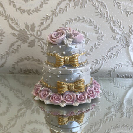 エタニティ ケーキボックス 【サイズ】 幅6.5×高さ6cm 注1)画面上と実物では多少色具合が異なって見える場合もございます。ご了承ください。 注2)この商品は当社サイトでも販売しております。在庫数の更新は随時行っておりますが、お買い上げいただいた商品が、品切れになってしまうこともございます。 その場合、お客様には必ず連絡をいたしますが、万が一入荷予定がない場合は、 キャンセルさせていただく場合もございますことをあらかじめご了承ください。 Eternity Cakebox 〜エタニティ ケーキボックス〜 ※エタニティ ケーキボックス トップにバラがデコレーションされた豪華な 二段式ウェディングケーキの小物入れです。 バラにはキラキラと輝くラインストーンが付いています。 結婚式の演出や、プチギフトとしてもどうぞ。 #01 ピンク #02 クリーム 販売単位 1個 入り数 1個入り 長さ 幅6.5×高さ6cm 素材 ポリレジン(プラスチック素材) 種類 ピンク・クリーム お届け方法 宅配便 935円 税込 送料別 カードOK レビュー1件 LUNA RIBBON ![]() | ||