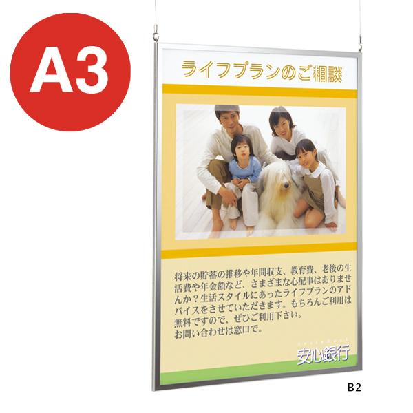 ●一辺開口のスライドセット式吊り下げフレーム。 ●省スペースでもポスター交換ラクラク。 ●しっかりとしたフレームデザインなので金融機関などの吊り下げ広告におすすめ。 ■種別:A3 ■外寸:W312×H435×D14.5mm ■有効画面寸法:W284×H407mm ■重量:0.4kg ■素材:フレーム:アルミ押出材 アルマイト仕上、面板:0.5mm透明エンビ2枚/5mmハッポースチロール ■仕様:屋内、両面 ■設置方法:吊り下げ ■付属部品:吊り紐、吊り金具 ※吊下げ用ワイヤーは別途ご用意下さい。 ※直射日光下では、熱によりエンビが変形することがあります。設置場所にご注意ください。 8,161円 税込 送料別 カードOK ショップスアシスト 楽天市場店 ![]() | ||