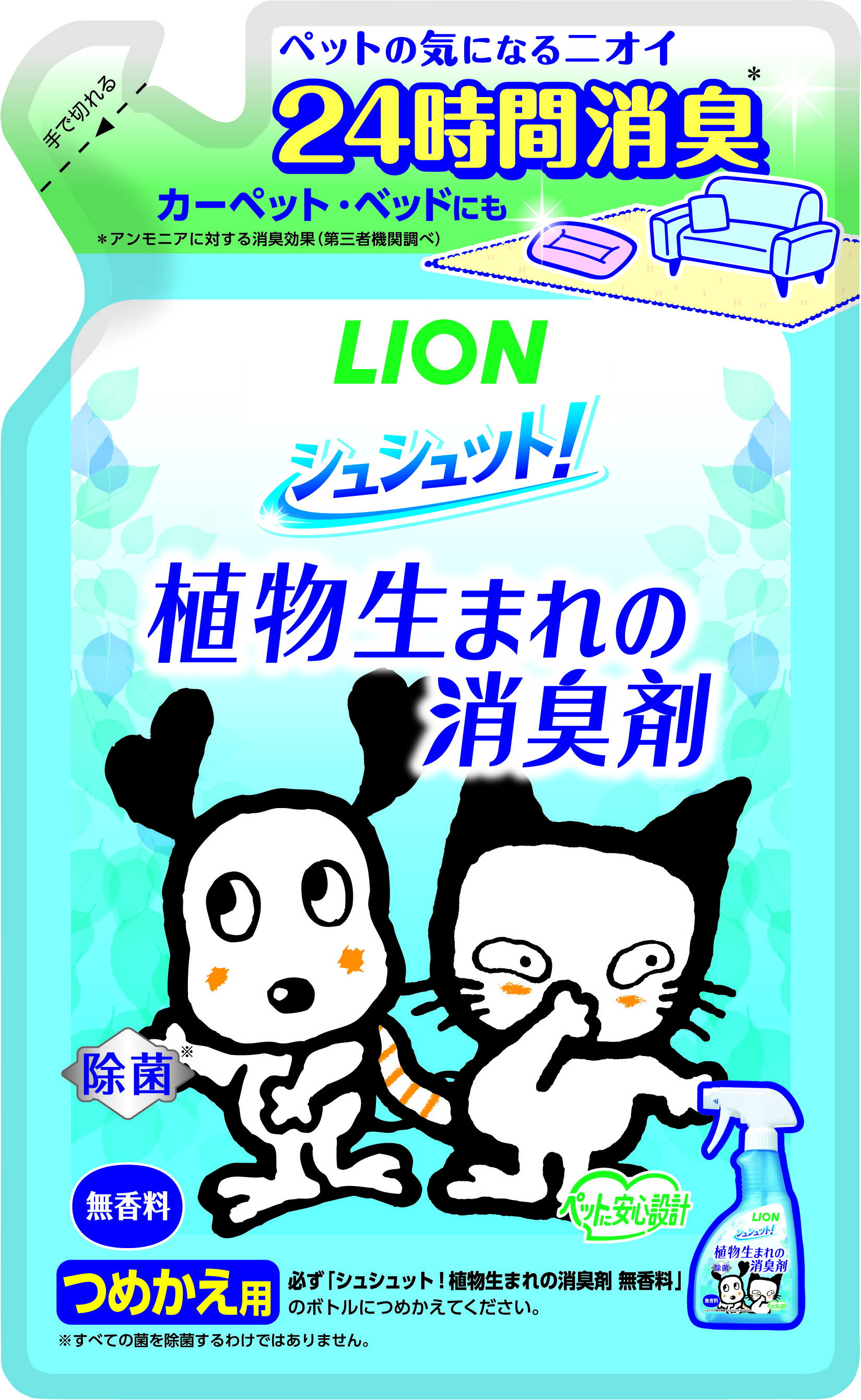 「ライオンペット シュシュット! 植物生まれの消臭剤 無香料 400ml 」は株式会社ホームセンターセブンが販売しております。メーカーライオンペット品名シュシュット! 植物生まれの消臭剤 無香料 400ml 品番又はJANコード JAN:4903351005600サイズ-重量490商品説明●植物生まれの消臭・除菌成分配合。●ペット周りの布製品や用品類の消臭や除菌に。●オシッコ臭を99.9%強力消臭、さらに長時間効果が続きます*1。●菌の増殖を抑えて*2清潔を保ちます。●99%除菌・ウイルス除去*3。●ペットがなめても安心。●犬猫の他、うさぎ・ハムスター・鳥などの小動物のニオイにもおすすめ。●香りが残らない無香料。*1:アンモニアに対する消臭率及び消臭効果(第三者機関調べ)。 *2:全ての菌の増殖を抑えるわけではありません。 *3:全ての菌・ウイルス除去するわけではありません。ウイルスは、エンベロープ型ウイルス1種で確認。■原材料:水、pH調整剤、可溶化剤、さとうきび抽出エキス、除菌剤、柿渋エキス※パッケージ、デザイン等は予告なく変更される場合があります。※画像はイメージです。商品タイトルと一致しない場合があります。《ペット用 消臭スプレー 犬 イヌ いぬ 猫 ネコ ねこ うさぎ ハムスター 鳥 小動物 消臭 ペットがなめても安心》商品区分:ペット用品原産国:日本広告文責:株式会社ホームセンターセブンTEL:0978-33-2811 675円 税込 送料別 カードOK ホームセンターセブン ![]() | ||