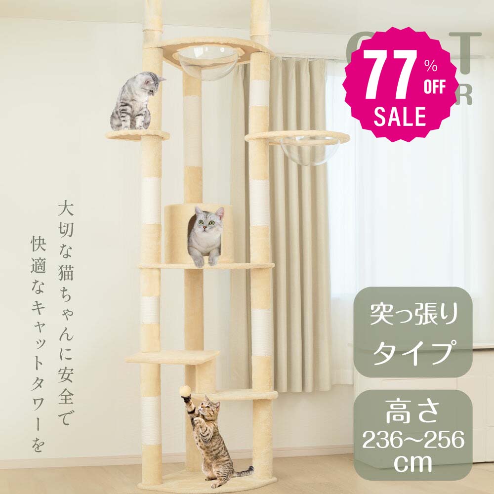 【新素材*優れた耐久性】 キャットタワーは毛羽が落ちにくい新素材を採用しました。起毛は触り心地がよく猫にとってもふかふか。表面全体は柔らかい手触りで小さい子猫も安心に寝れます。商品に採用している天然サイザル麻は、摩擦に強く耐久性が高い麻で、爪とぎしても切れにくく、昇り降りをする時に脚を踏み込みしやすい素材になります。 【幅広い底座&安定性抜群】 土台が幅55cm・奥行37cmと十分な大きさである、下の台座はしっかりと上部の重さと猫ちゃんの重さを支え、猫ちゃんが上り降りでも揺れない、飼い主さんも猫ちゃんも安心で使用いただけます。猫ちゃんの快適な運動と安全をしっかりと守ります。 【猫が喜ぶ機能満載】 この「キャットタワー」は3つの台座、、大きい隠れ家、360°視野透明な宇宙船、爪とぎポール、遊び放題の幅広い台座、羽ポンポンおもちゃなどを取り付きました。猫ちゃんの遊び場としてピッタリの室内用キャットランドです。運動不足解消に一役買います!子猫からシニア猫まで幅広く利用可能。 【組立簡単&移動やすい】 全体高さ:135cm日本語組立説明書が付属し、手作業が苦手の方も気楽に組み立てられます。また、このキャットタワーは据え置きタイプで、床に置くだけなので、移動させたいときも簡単。 5,880円 税込 送料別 カードOK レビュー7件 YTSHOP ![]() | ||