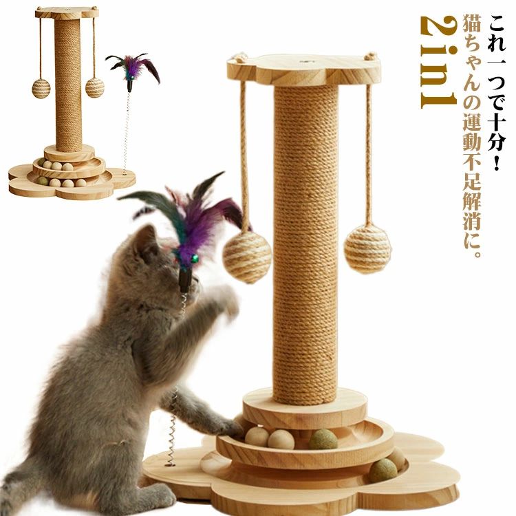 サイズ:横幅40cmx奥行40cmx高さ80cm、重さは約2.6KG 麻縄とカーペットで楽しくツメとぎ。爪研ぎ部分はサイザル麻でできた天然素材の爪研ぎ。猫ちゃんの体にも優しい素材です。猫ちゃんが爪を研ぐことは爪のメンテナンスをすると共に、マーキングや、ストレス解消など、猫の健康に欠かせません。 ポールの先端にはおもちゃつき。 猫ちゃんのあそび心をくすぐるおもちゃがポールの先端についています。ジャンプしたり、登り降りしたり、日頃の運動不足を解消できるかもしれません。 段ボール製の爪とぎと比べて長時間使用できます。 組み立て簡単。万が一商品の不具合や破損等ございましたら、交換対応させていただきますので、お手数ですが、弊社までメールにてご連絡頂きますようお願い致します。 4,151円 税込 送料込 カードOK ミソラ雑貨屋 ![]() | ||