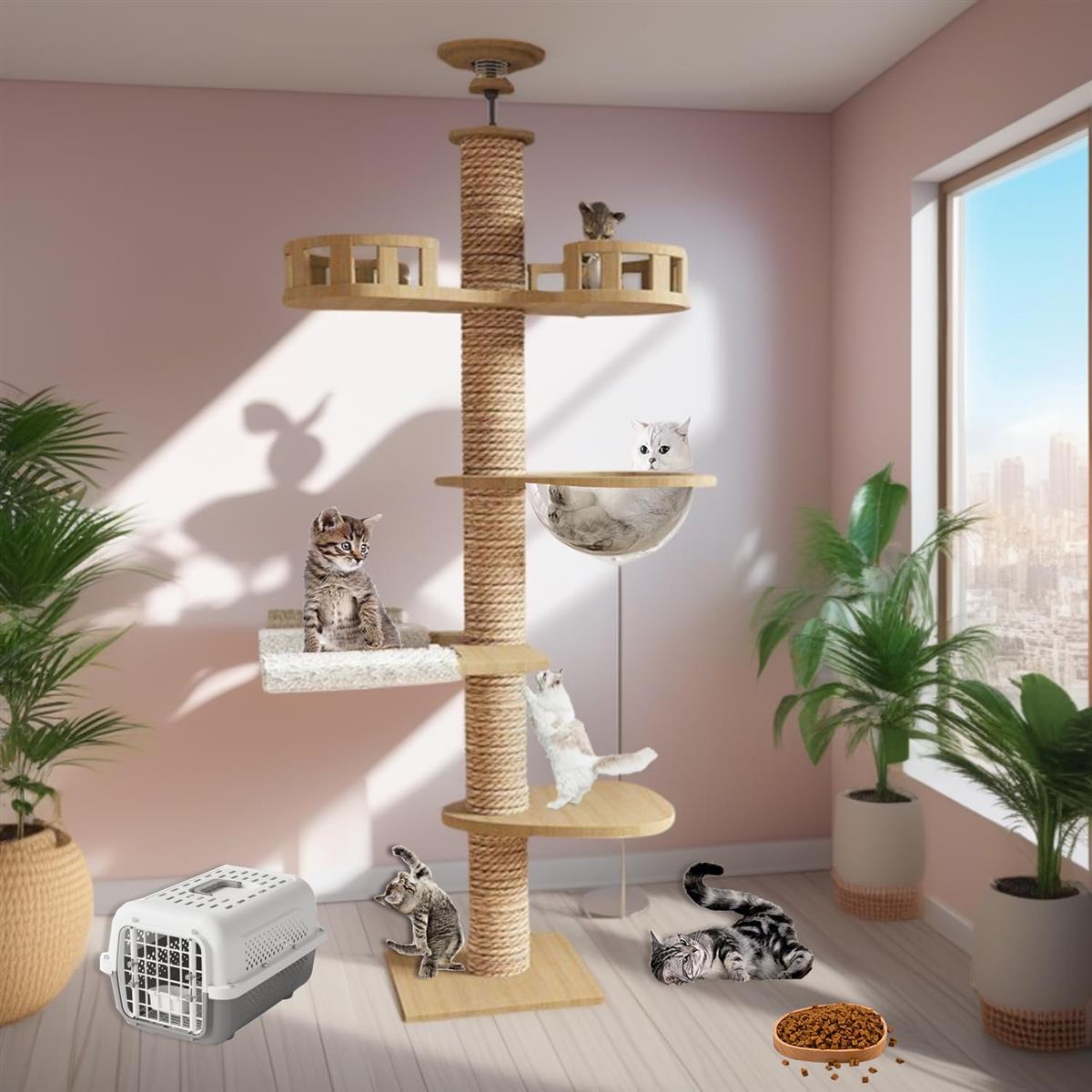 【頑丈で安定している】このキャットタワーは大型猫用に設計されており、頑丈な木製の構造を採用しています。直径12cmのサイザル麻ポールは、猫の爪とぎに最適で、家具や壁を傷つけることなく、猫が自由に爪を研ぐことができます。高さ調節可能な設計により、天井にしっかりと固定でき、安定性も抜群です。多頭飼いにも対応でき、複数の猫が同時に使用しても問題ありません。キャットツリーとして、猫の遊びと休憩場所を一つで提供します。 【多機能設計】本キャットタワーには、猫の爪とぎ、登り、ジャンプ、休憩ができる多機能が詰まっています。サイザル麻のポールと広々とした展望台、宇宙船型の休憩所、さらにハンモックも完備し、猫が遊びながらリラックスできるスペースを提供。木登りが好きな猫にとっては、自宅でも思いっきり運動できる場所を提供でき、ストレス解消にも効果的です。棚板は15kgの重さにも耐えられる強度を持ち、猫の体重をしっかり支えます。 【環境に優しい素材とお手入れ簡単】当キャットタワーは、高温処理された木材を使用しており、耐湿性や耐圧性が優れており、長期間使用しても形が崩れることがありません。宇宙船は水洗い可能、ハンモックの布も取り外してお手入れが簡単で、清潔に保つことができます。木の表面は湿らせた布で拭くだけでOK。お手入れが楽で、猫の健康を守りながら、安心して使える商品です。 【おしゃれでインテリアに調和するデザイン】シンプルで洗練されたデザインのキャットタワーは、どんなお部屋にもマッチします。木製の優れた質感とスリムなデザインで、猫の遊び場としてはもちろん、インテリアとしても美しい空間を作ります。カラーも落ち着いたトーンで、家の中に自然に溶け込みます。猫が自由に遊べるだけでなく、おしゃれな空間を提供します。 【簡単な組み立てと安心のサポート】組み立てが簡単で、設置動画が付属しており、どなたでも簡単に組み立てることができます。また、ご購入前に天井の高さをご確認いただければ、より快適にご使用いただけます。不良部品があった場合は無料で交換対応いたしますので、返品の手間も心配ありません。 15,800円 税込 送料込 カードOK 大西商事アセットサービス ![]() | ||